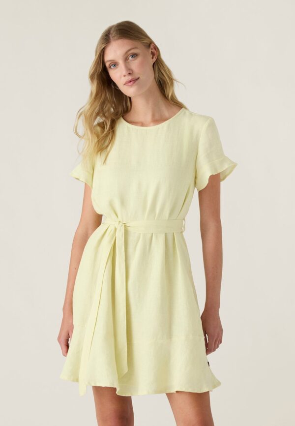 Belted Linen V-neck Mekko