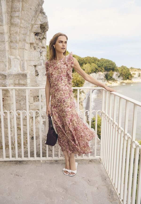 Oskar Georgette Ruffle Midi Mekko