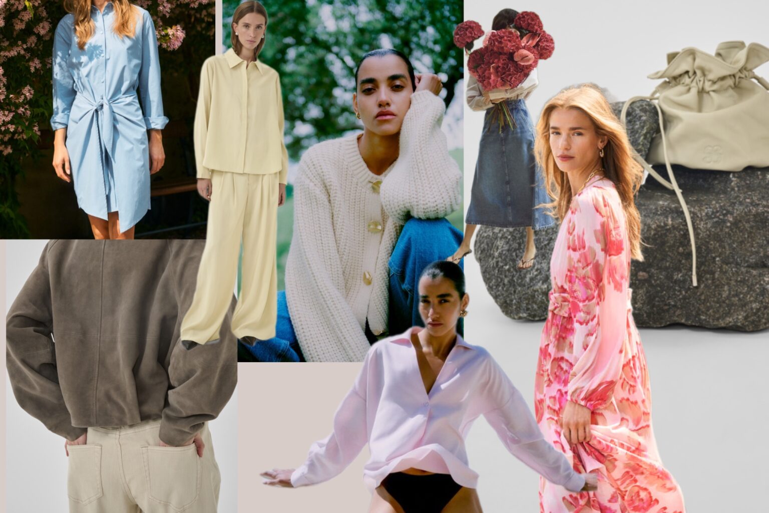Keväällä leikitään maanläheisillä earth tone -sävyillä, kuten hiekan, terrakotan ja pehmeän ruskean vivahteilla, joita täydentävät kauniit ja hempeät pastellit: vaaleansininen, vaalean keltainen ja romanttinen pinkki. Pienet ja rohkeat oranssinpunaiset yksityiskohdat tai asusteet tuovat kokonaisuuteen energiaa ja modernia särmää. Näillä väriyhdistelmillä rakennat helposti harmonisia, yhdisteltäviä asukokonaisuuksia, jotka tuntuvat luonnollisilta mutta tuovat silti persoonaasi esille.