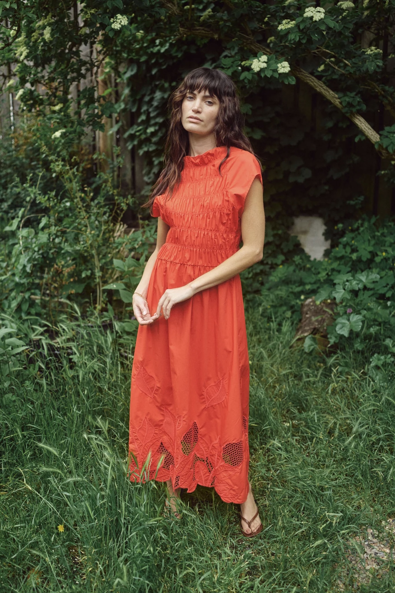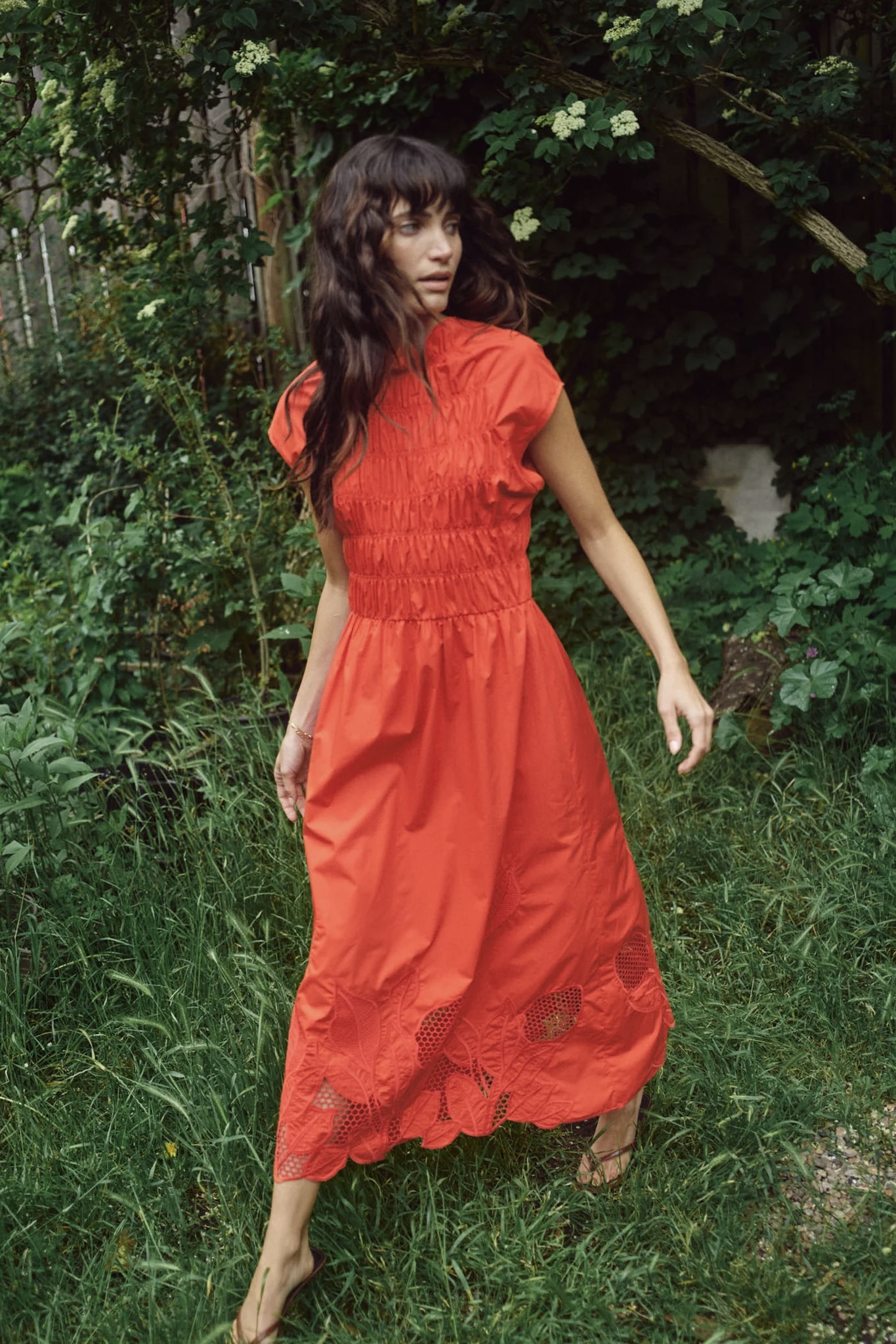 Tyylikäs ja klassinen luomu puuvillasta valmistettu mekko kauniilla kirjonta yksityiskohdalla. Mekossa yksityiskohtana midi -mittainen helma ja joustava vyötärö tuomaan muotoa. Täydellinen mekko niin aurinkoisiin kesäpäiviin että juhlallisiin tilaisuuksiin. Suosittelemme valitsemaan oman koon.