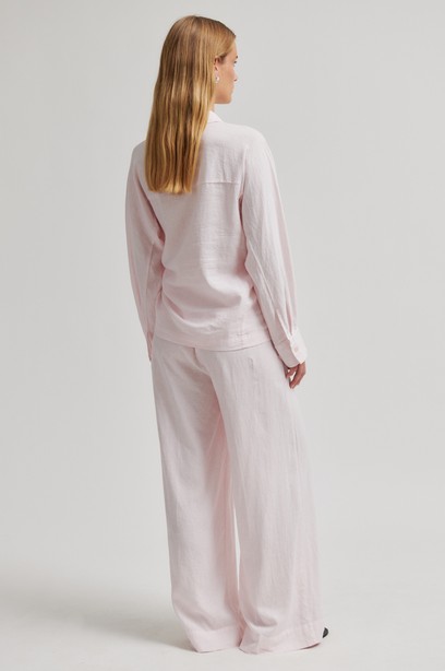 Tyylikäs ja klassinen pusero on valmistettu ilmavasta pellava-viskoosi sekoitteesta. Puserossa nappi kiinnitys sekä ylimääräinen nappi sivussa kapeamman istuvuuden luomiseksi. Normaali ja rento malli, joten suosittelemme valitsemaan oman koon tai koon pienemmän.