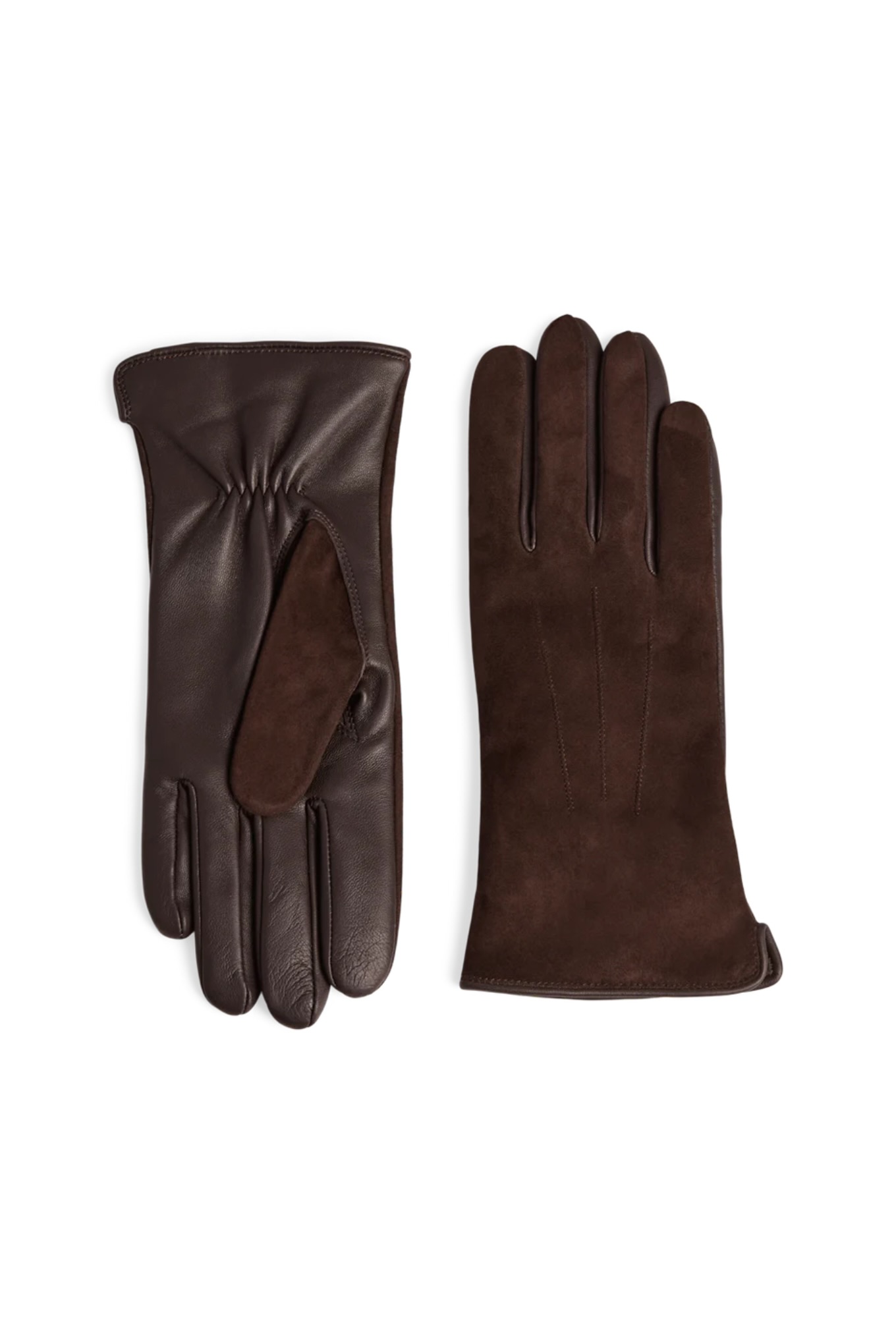 Klassiset ja tyylikkäät hanskat, jossa kämmenselkä pehmeää mokkanahkaa ja kämmen kierrätettyä nahkaa. Villasekoittenen sisäpuoli tuo lämpöä kylmille syys -ja talvisäille.