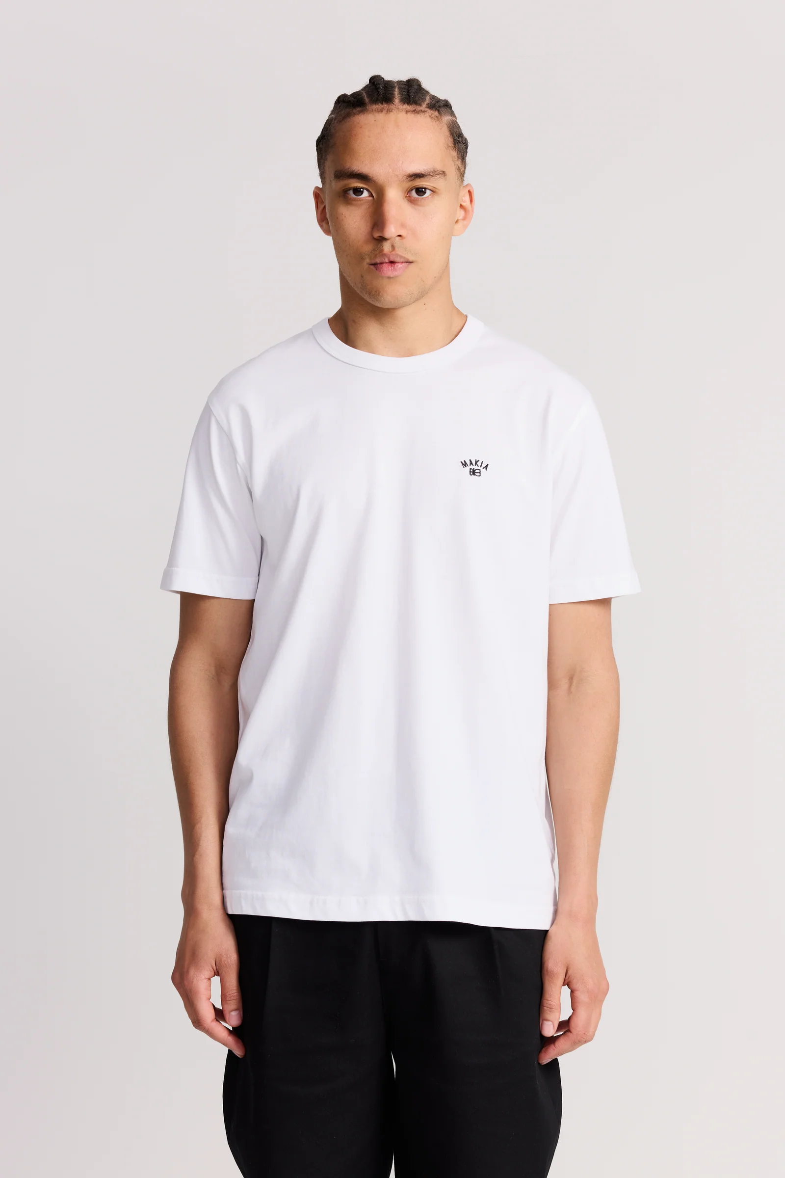 Klassinen ja rento puuvillasta valmistettu t-paita, jossa yksityiskohtana rinnuksella Makia -logo. T-paita on rentoa mallia, joten suosittelemme valitsemaan oman koon ja koon pienemmän väliltä.