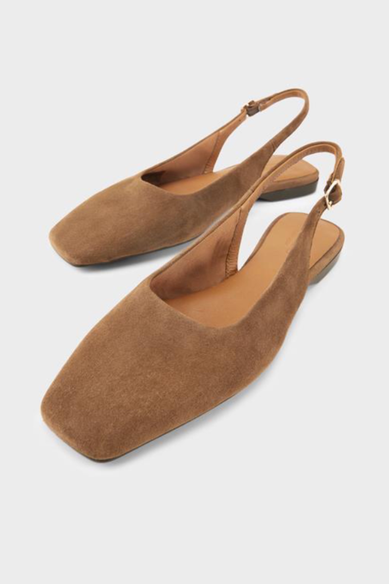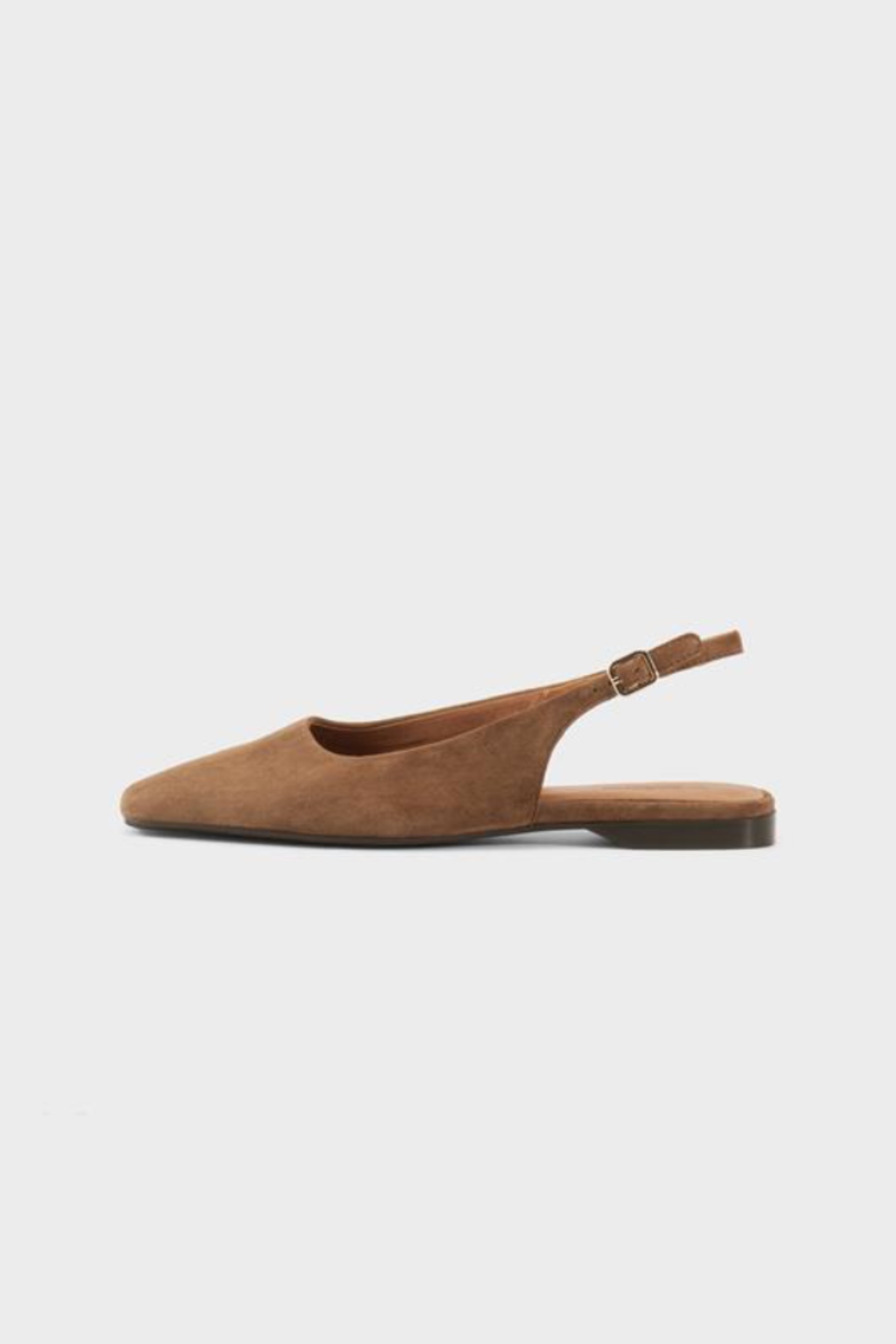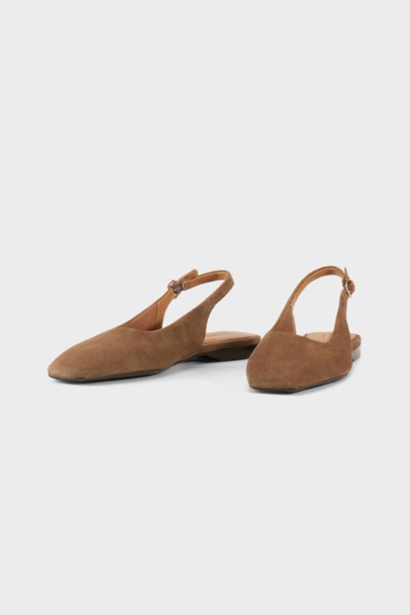 Ajattomat Delia Slingback -kengät on valmistettu ruskeasta mokkanahasta ja niissä on hienovarainen neliskanttinen kärki. Kengissä säädettävä remmi.