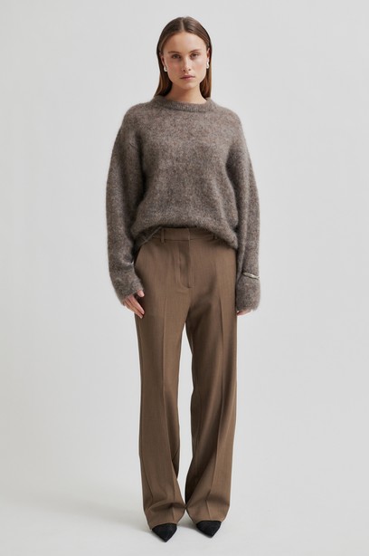 Klassinen pörröneule on valmistettu pehmeästä mohairsekoitteestaa. Neuleessa pyöreä pääntie, tiputetut olkapää ja yksityiskohtana sivuilla paksut saumaukset. Rento malli, joten suosittelemme valitsemaan oman koon ja koon pienemmän väliltä.