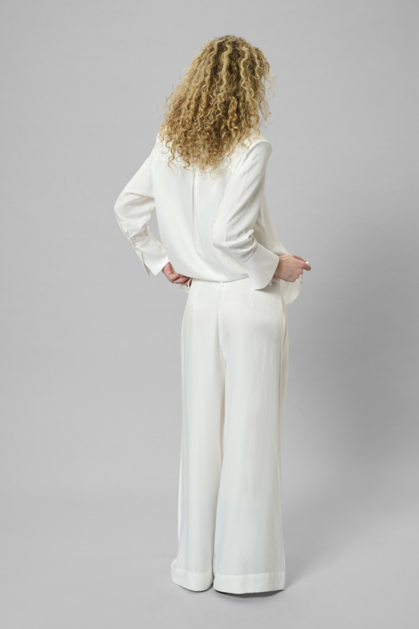 Super tyylikkäät ja klassiset satiini housut on valmistettu ilmavasta viskoosi sekoitteesta. Rennoissa ja leveissä housuissa on edessä pienet laskokset, sivulla taskut sekä sivulla piilotettu vetoketju. Housut sopivat täydellisesti neuleen kanssa arkeen ja juhliin yhdistettynä Estelle Paitapuseron tai Mille Topin kanssa. Rentoa mallia ja kokoa, joten suosittelemme valitsemaan oman koon.