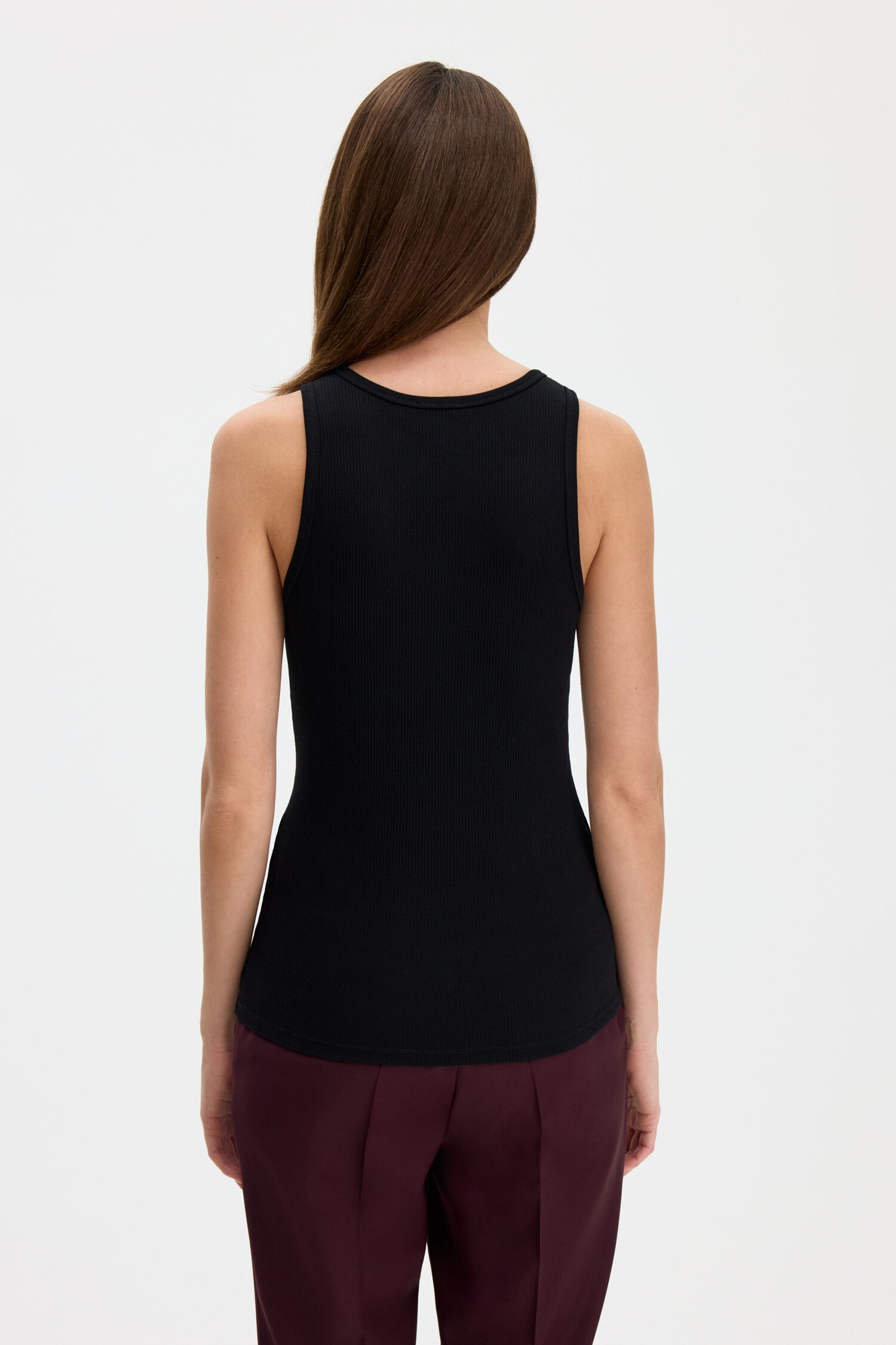 Klassinen toppi on valmistettu pehmeästä puuvillasta. Topissa ribattu pinta, korkea kaula-aukko sekä slim fit- mallinen. Suosittelemme valitsemaan oman koon.