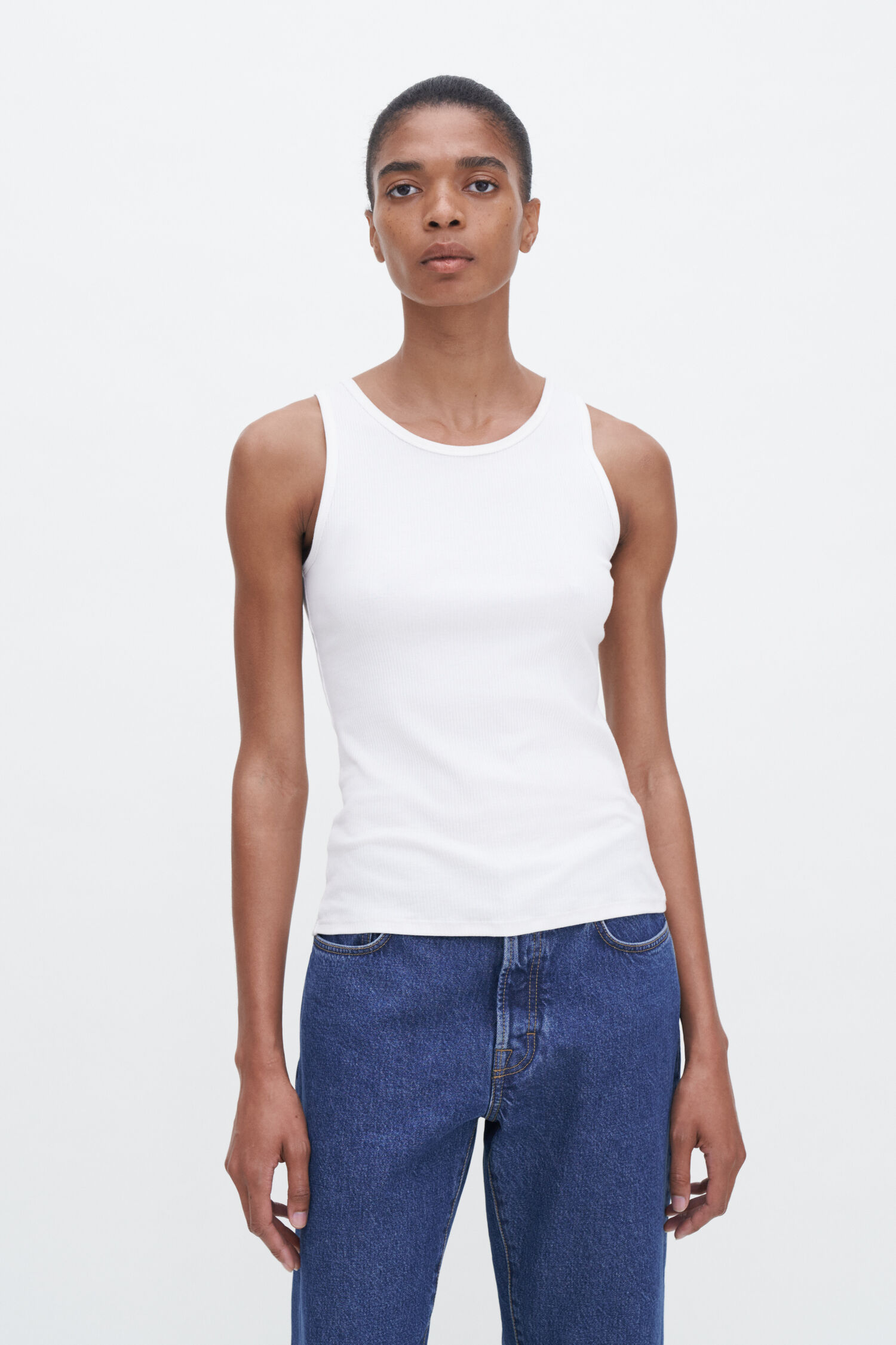 Klassinen toppi on valmistettu pehmeästä puuvillasta. Topissa ribattu pinta, korkea kaula-aukko sekä slim fit- mallinen. Suosittelemme valitsemaan oman koon.