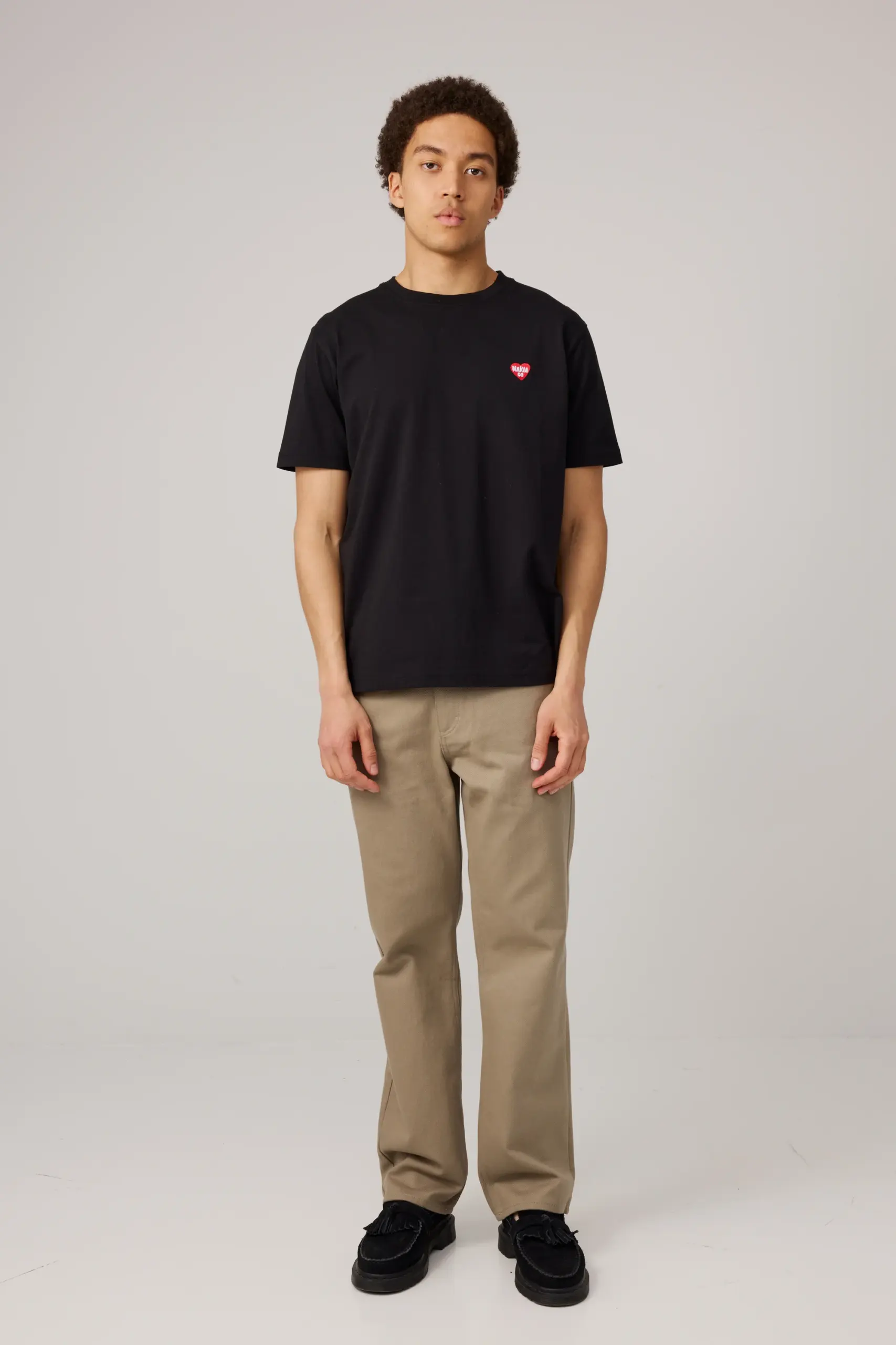 Tyylikäs luomu puuvillasta valmistettu t-paita, jossa yksityiskohtana rinnuksella sydän sekä Makia -teksti. T-paidassa normaali malli ja koko, joten suosittelemme valitsemaan oman koon tai koon pienemmän.