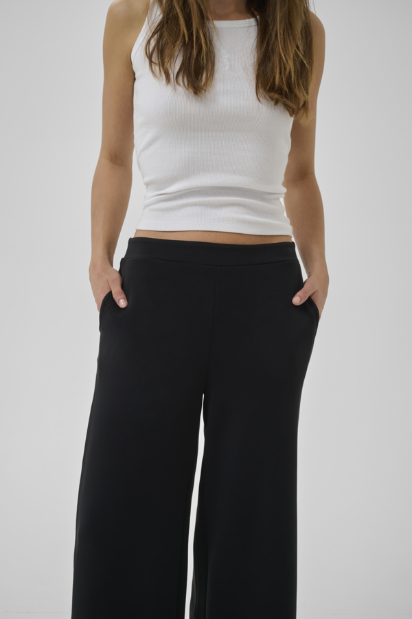 Rennot housut on valmistettu pehmeästä viskoosi sekoitteesta. Housuissa mukava joustava vyötärö, takana kuminauha sekä suorat pitkät lahkeet. Yhdistä mukavat ja rennot housut Helle Boxy T-paidan tai Helle Asymmetric T-paidan kanssa.