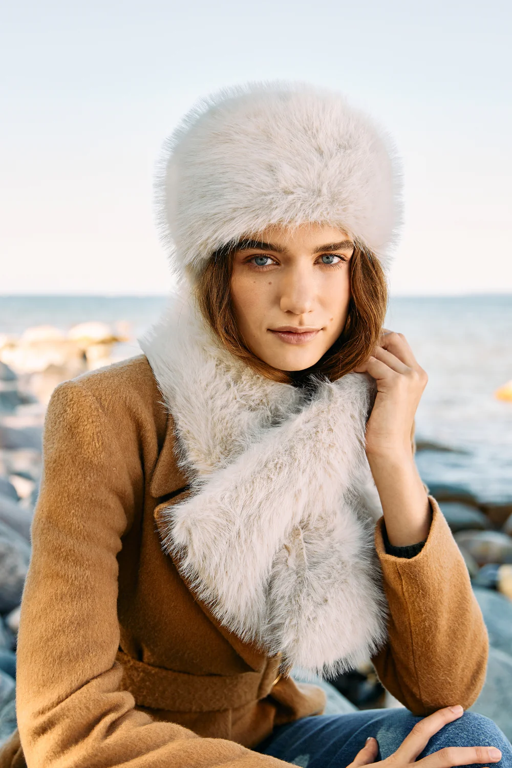 Tyylikäs ja lämmin tekokarvallinen huivi. Tyylikäs huivi on valmistettu Italiassa.