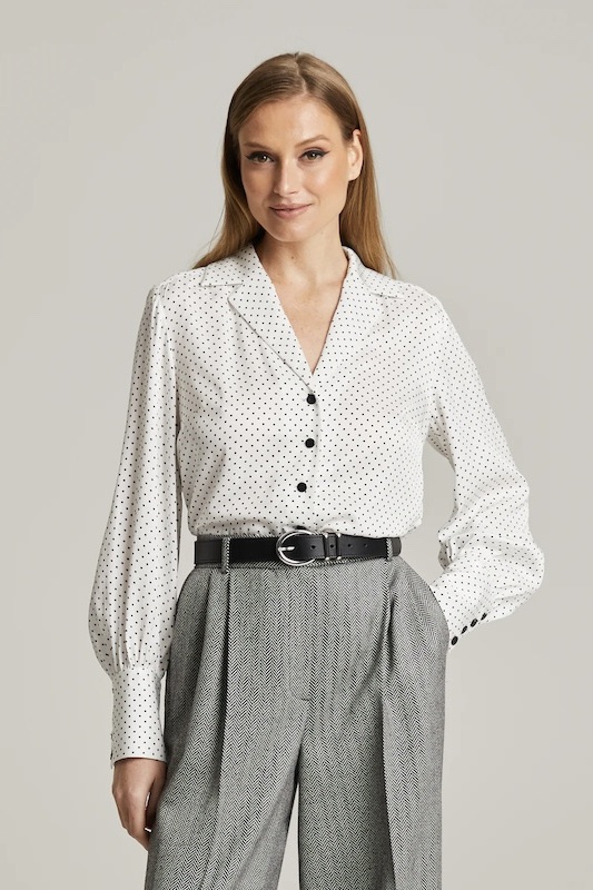 Kauluspaita rennolla istuvuudella. Paidassa on pitkät hihat leveillä manseteilla, ja se on valmistettu italialaisesta viskoosisatiinista.
