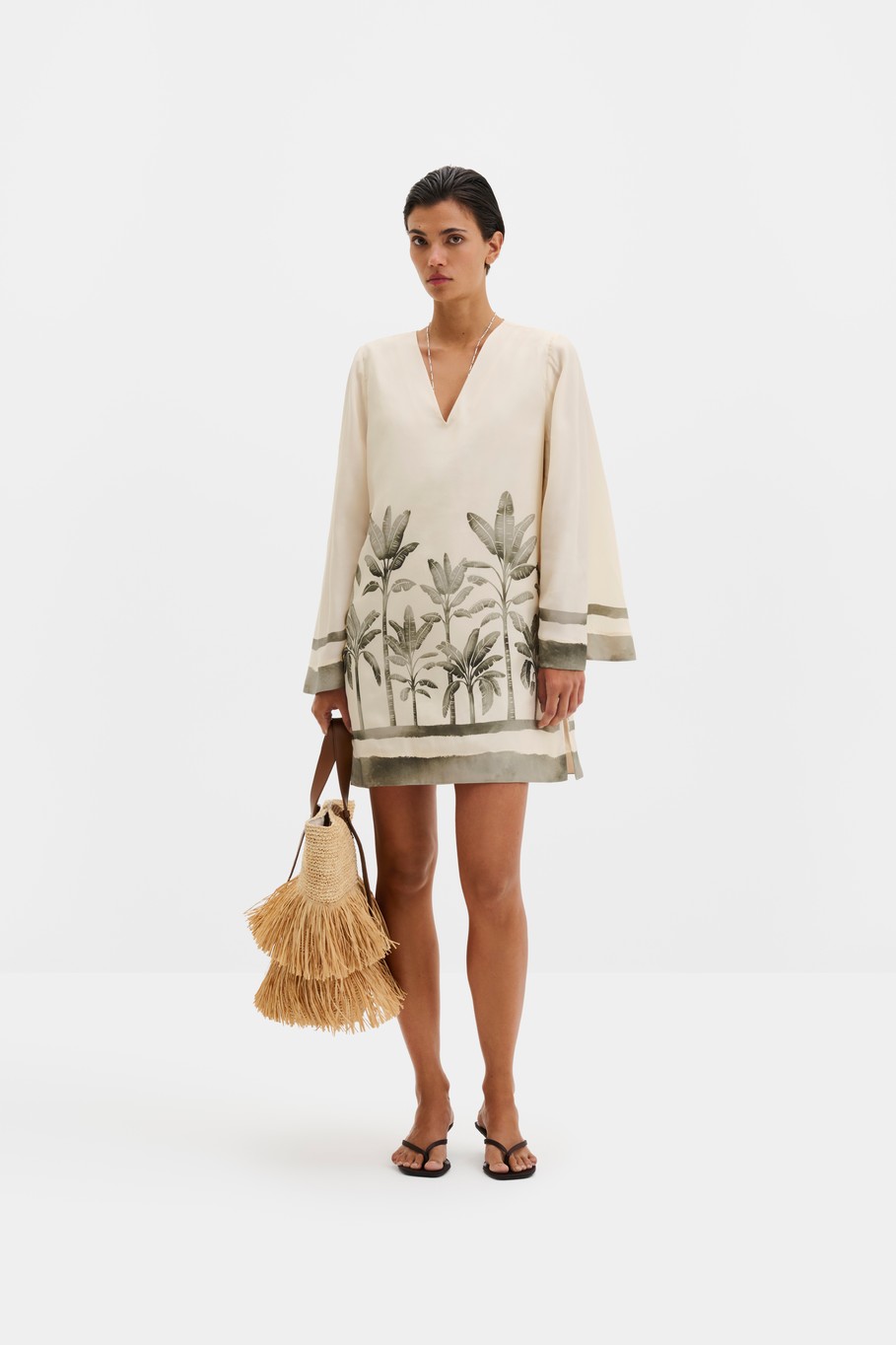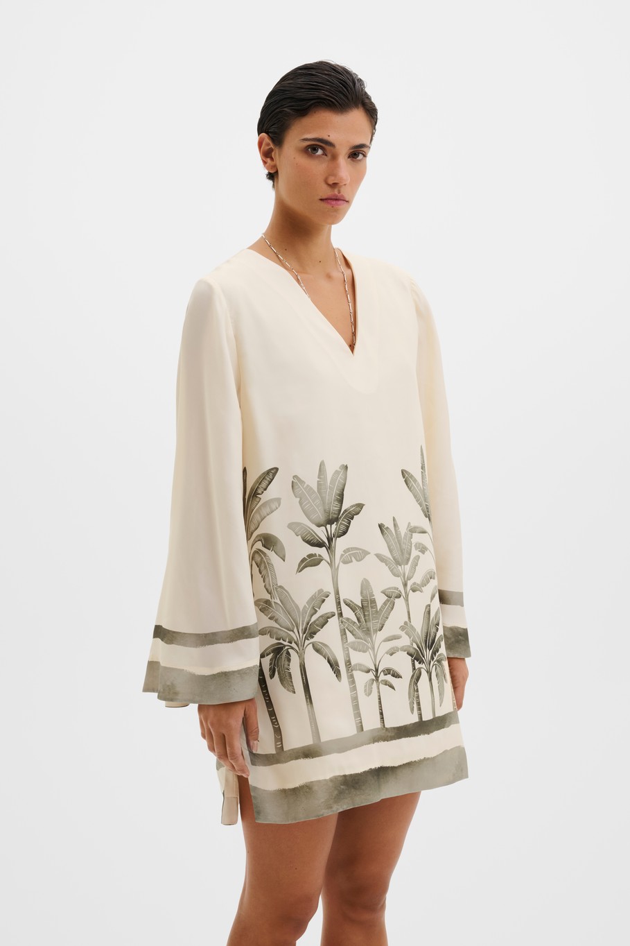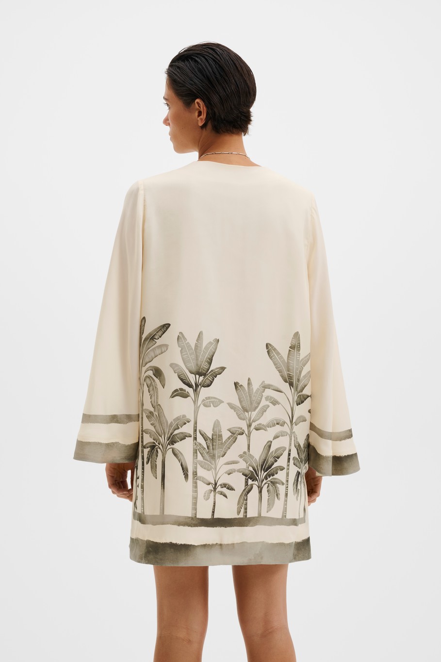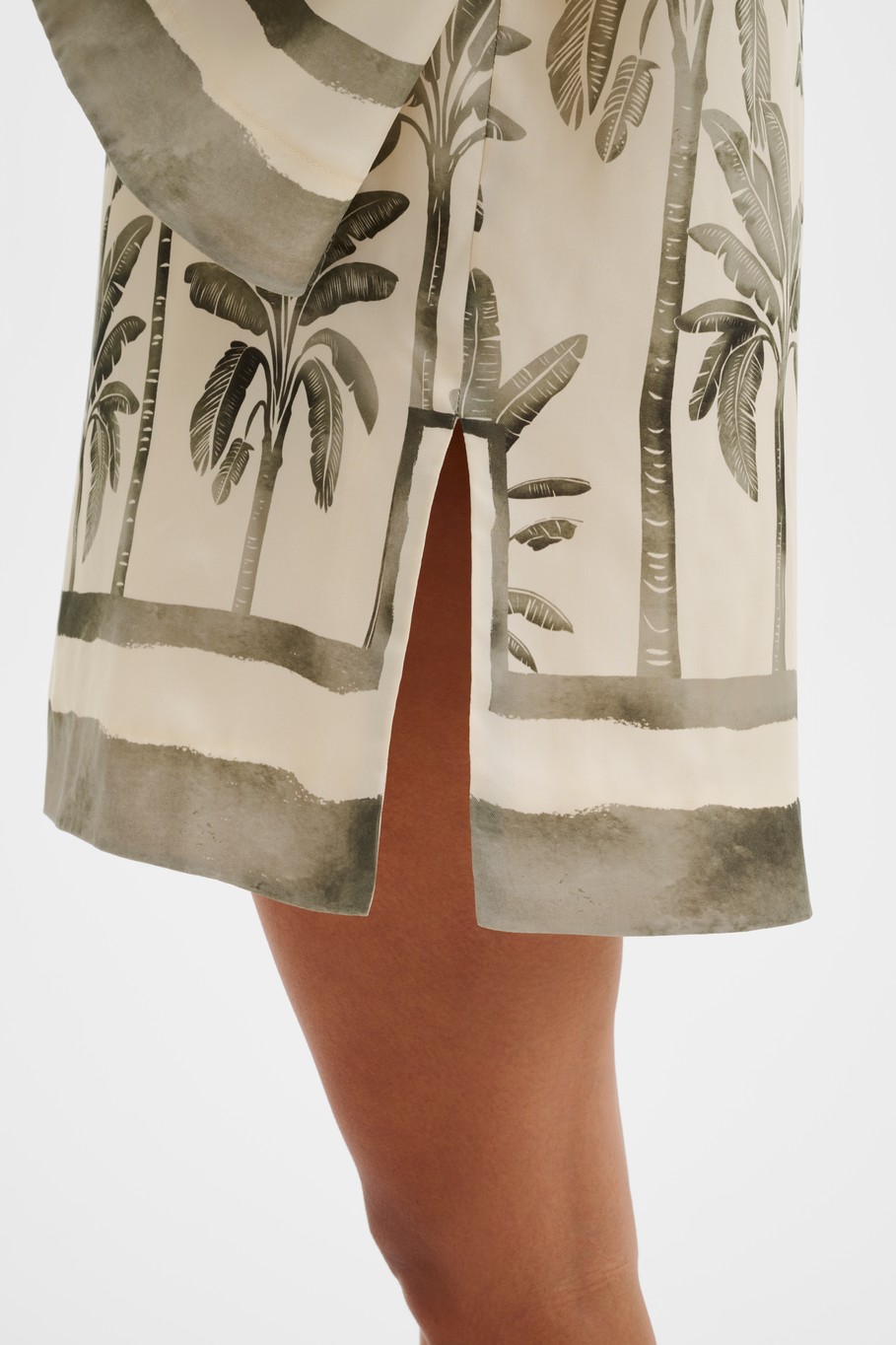 Super kaunis ja rento tunika on valmistettu silkistä. Ohuessa ja ilmavassa tunikasa on syvä imarteleva kaula-aukko, leveät lahkeet, halkiot helmassa sekä tyylikäs palmukuvio. Yhdistä settinä Izabella High Wide Housujen kanssa tai Dias Housujen kanssa. Suosittelemme valitsemaan oman koon.