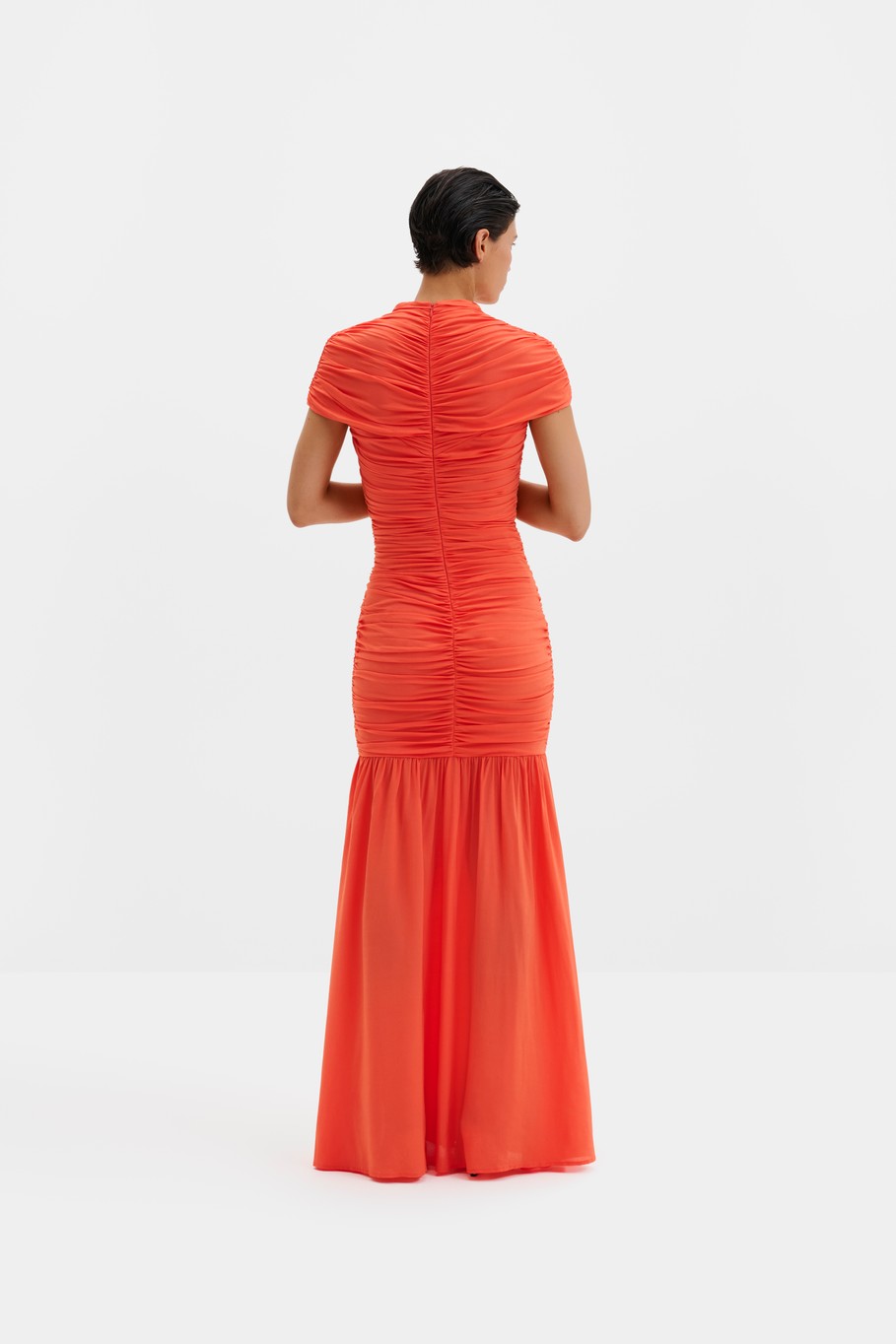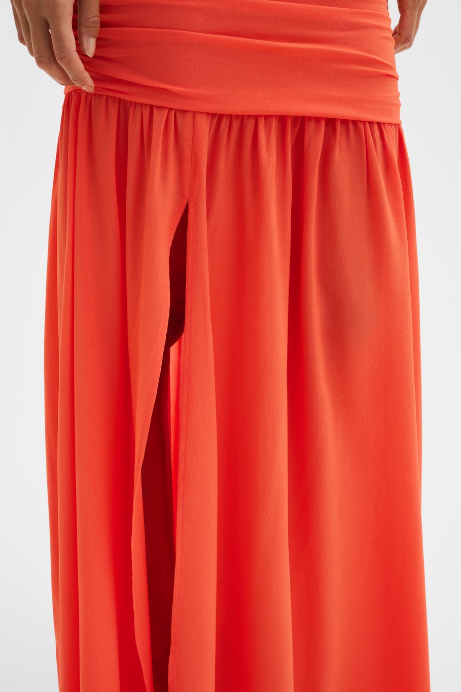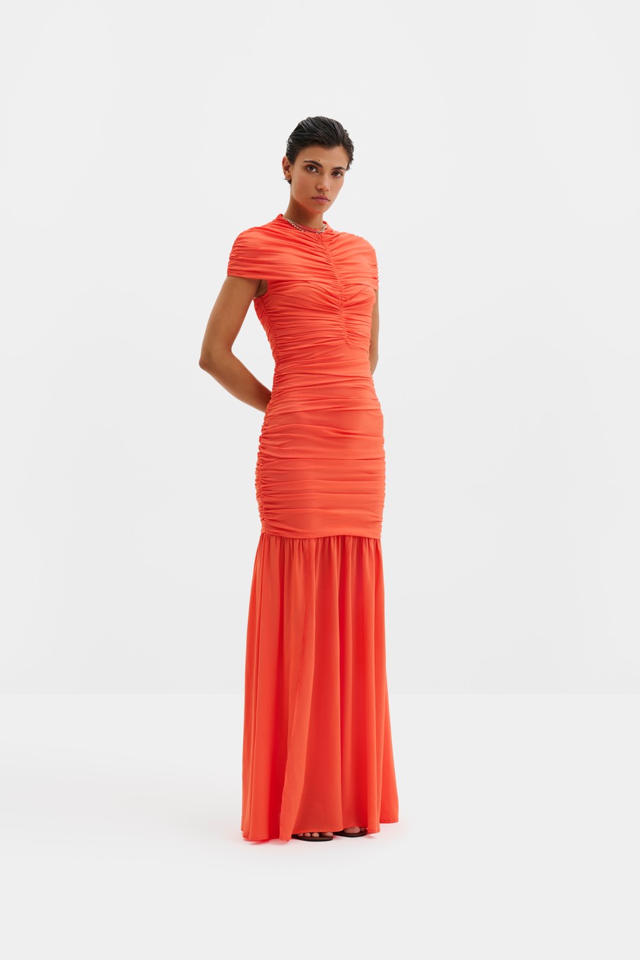 Super kaunis ja tyylikäs maxi -mittainen mekko, jossa drape kaulus ja rypytetty yläosa. Sifonkimekossa halkio helmassa tuomaan keveyttä. Suosittelemme valitsemaan oman koon.