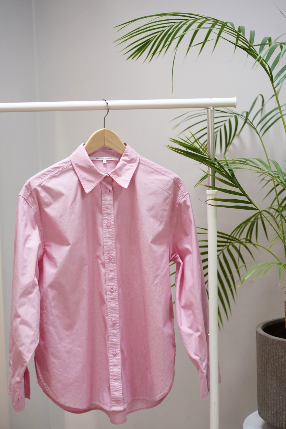 Upea pinkki kauluspaita. Reilua mitoitusta (Menee hyvin S-M kokoa käyttävälle). Sivuissa halkiot, jotka saa kiinnitettyä napeilla.