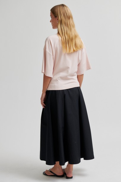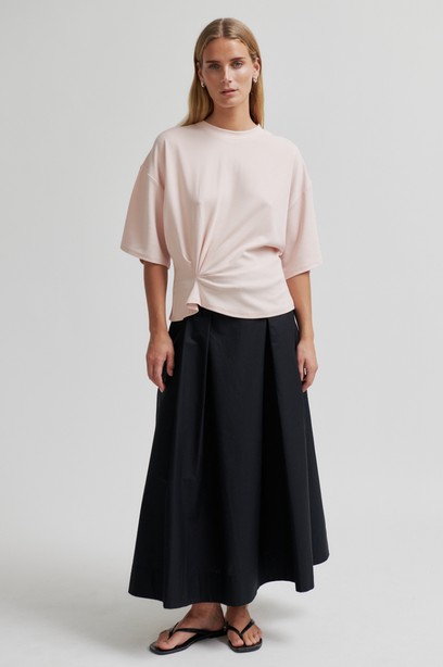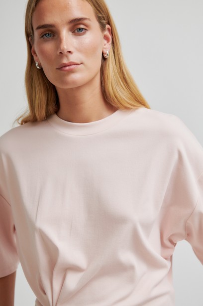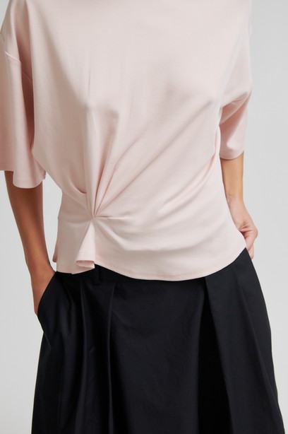 Tyylikäs ja rento t-paita on valmistettu pehmeästä lyocell-puuvilla sekoitteesta. T-paidassa yksityiskohtana vyötäröllä rypytys, pyöreä pääntie sekä rennto 3/4 -osa hihat. T-paidassa ylhäältä rento istuvuus ja vyötäröltä istutettu. Suosittelemme valitsemaan oman koon.