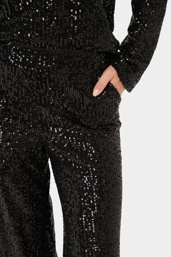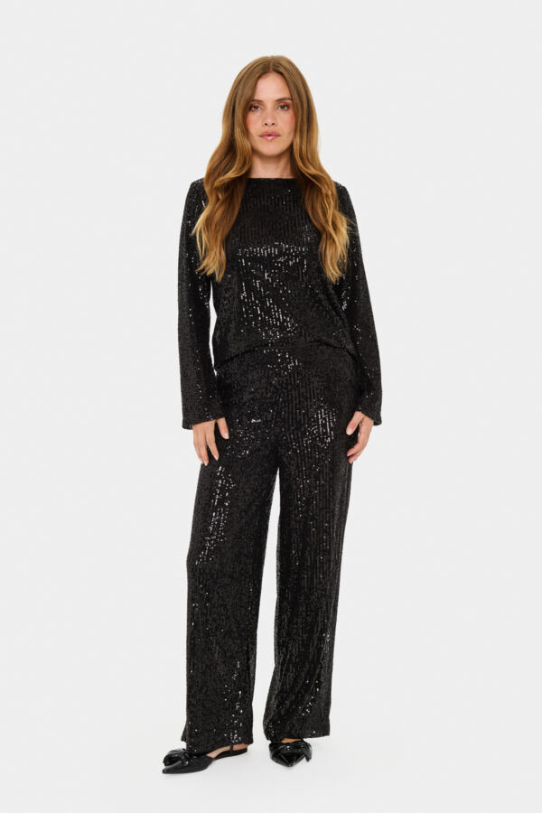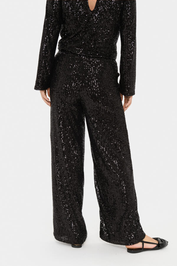 Tyylikkäät ja super mukavat paljettihousut. Housuissa joustava kuminauha vyötärö sekä suorat lahkeet. Yhdistä arkeen muhkean neuleen kanssa tai juhliin saman sarjan Neyana Paljettipuseron kanssa.