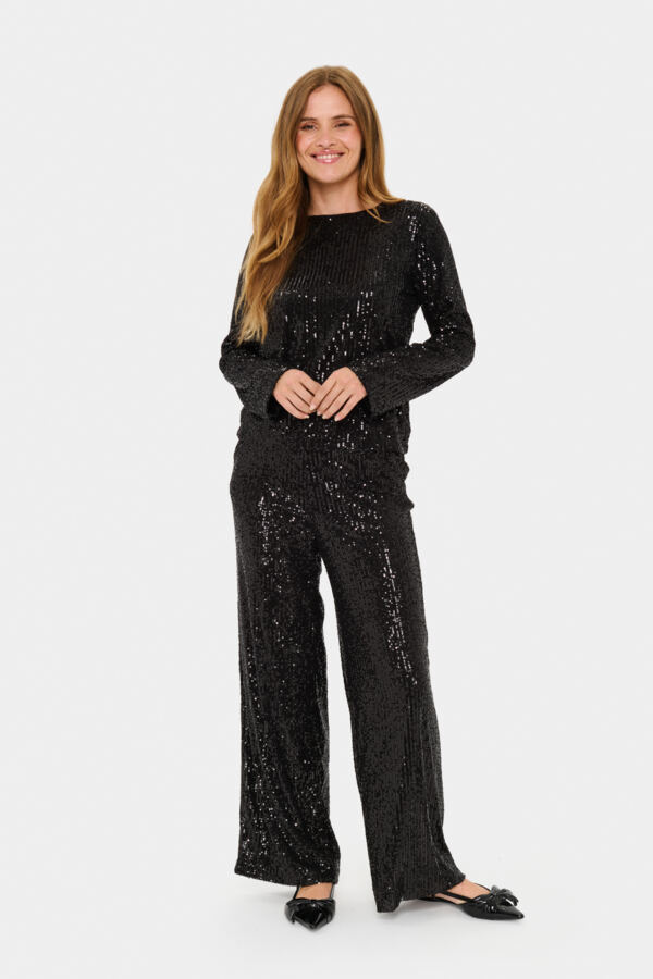 Tyylikkäät ja super mukava paljettipaita. Paljettipaidassa on suora klassinen leikkaus ja selässä pieni nappi sulkemiseen. Yhdistä arkeen lempi farkkujesi kanssa tai juhliin saman sarjan Neyana Paljettihousujen kanssa.