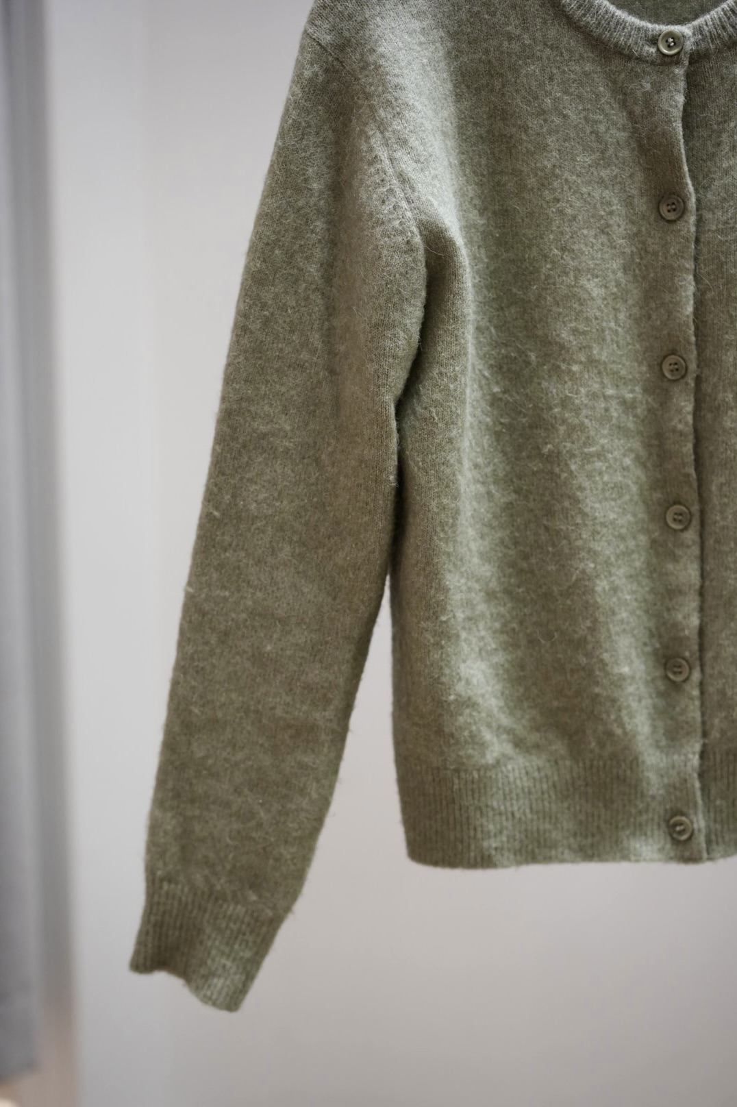 Laadukas neuletakki kauniissa vihreässä sävyssä.