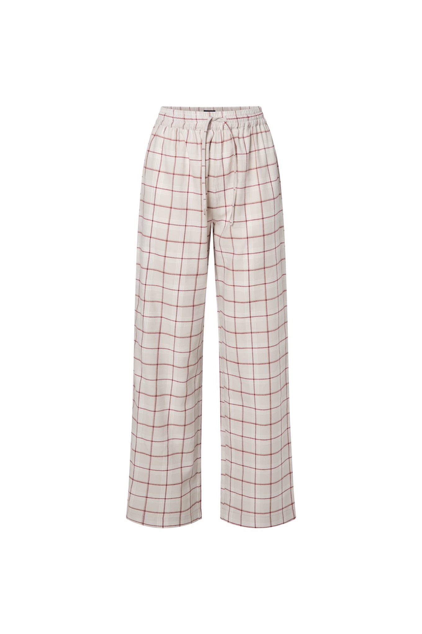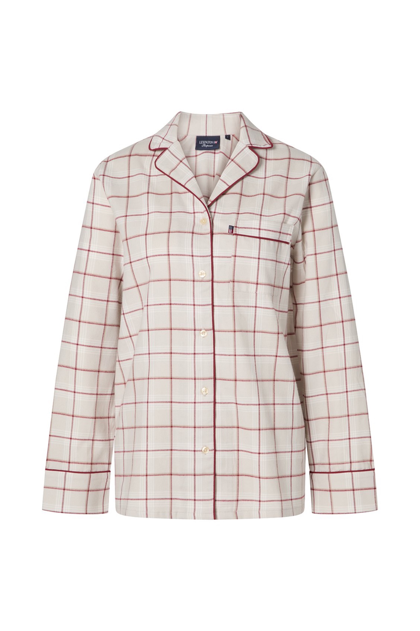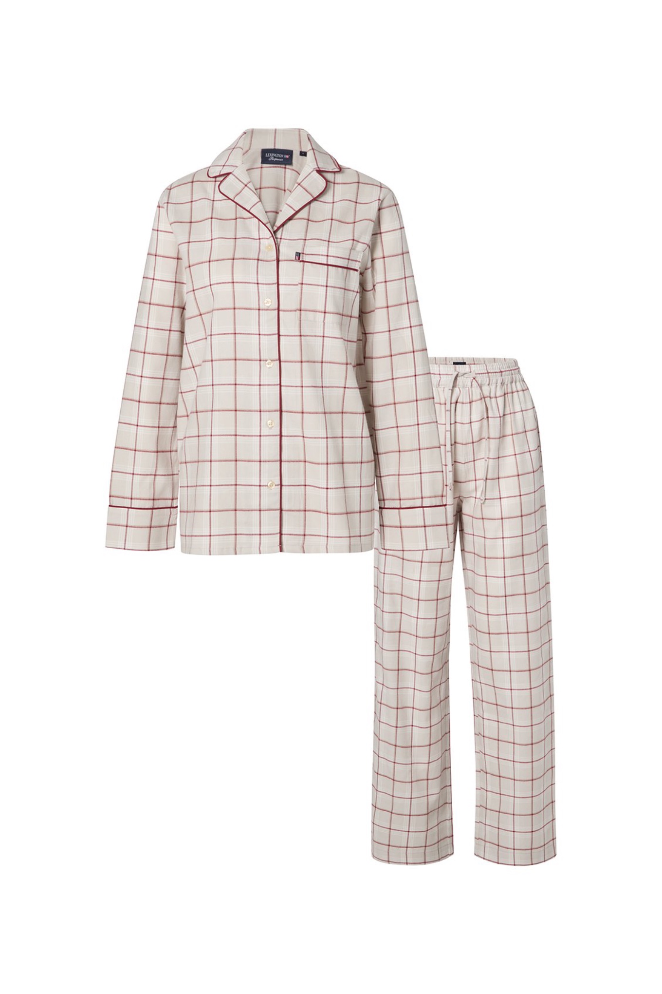 Ihana ruudullinen pyjama setti on valmistettu pehmeästä luomu puuvillasta. Pyjama paidassa pitkät hihat, napitettava etuosa, rintataku ja housuissa kuminauha nyörineen, rento väljä lahje sekä kätevä takatasku.