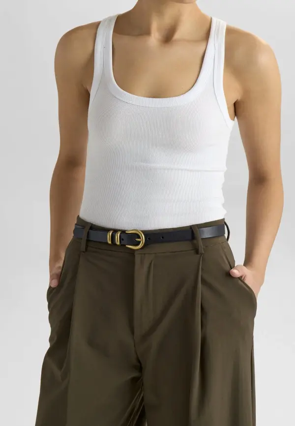 Klassinen nahkavyö, jossa yksityiskohtana tummat soljet.