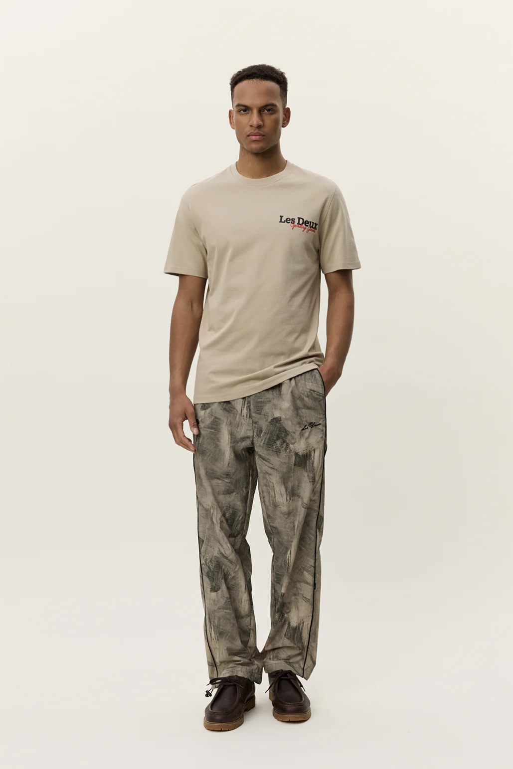 Siisti ja rento t-paita on valmistettu pehmeästä puuvillasta. Yksityiskohtana t-paidassa rinnukselle on painettu Les Deux -teksti. T-paidassa rento malli ja koko, joten suosittelemme valitsemaan oman koon ja koon pienemmän väliltä.