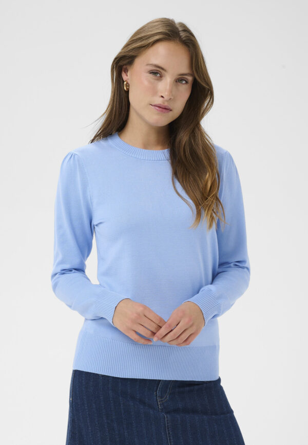 Tyylikäs ja klassinen neulepusero on valmistettu viskoosi -sekoitteesta. Puserossa pitkät hihat ja olkapäissä yksityiskohtana pienet rypytykset.