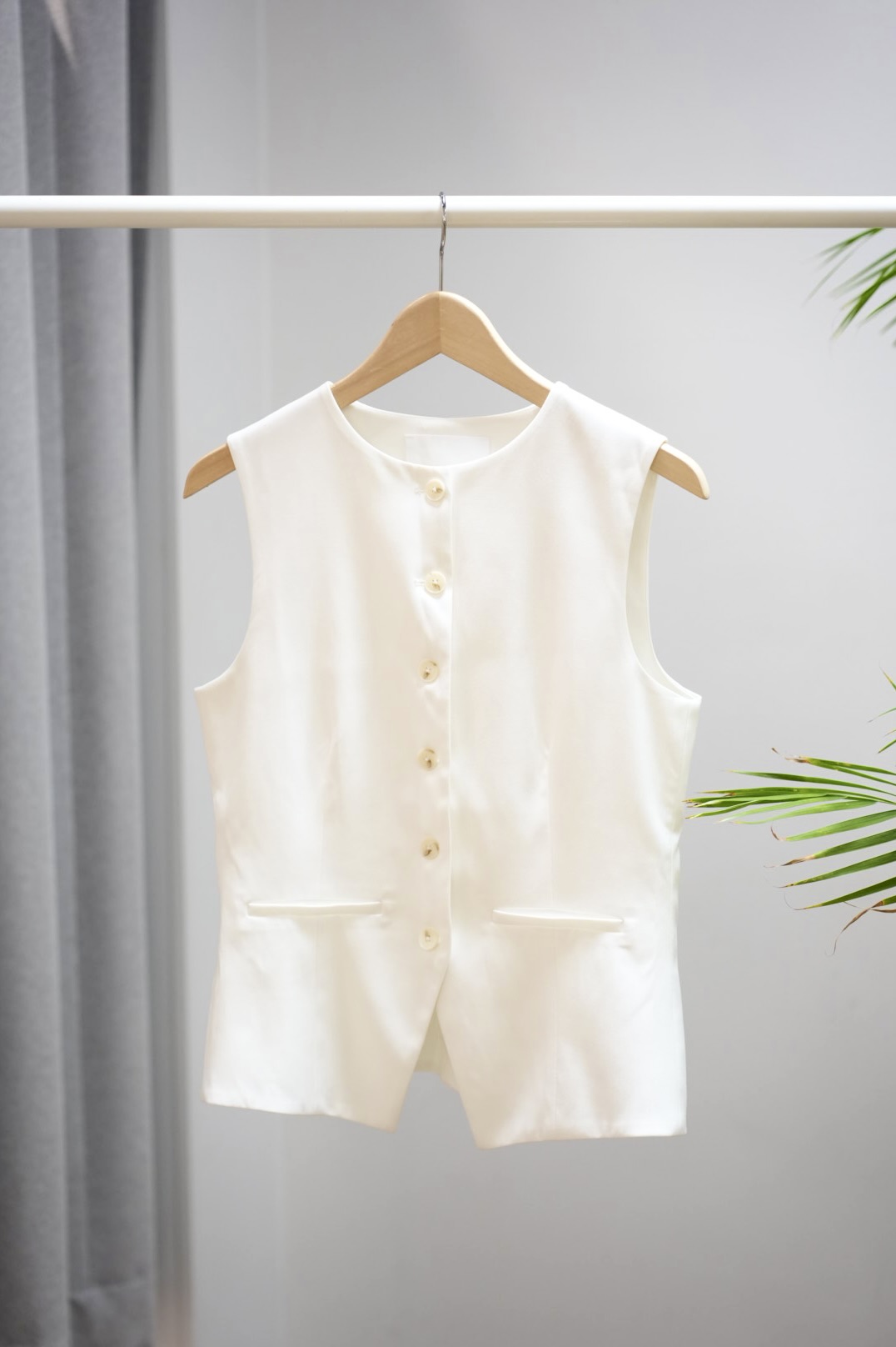 Kaunis valkoinen liivi napituksella.