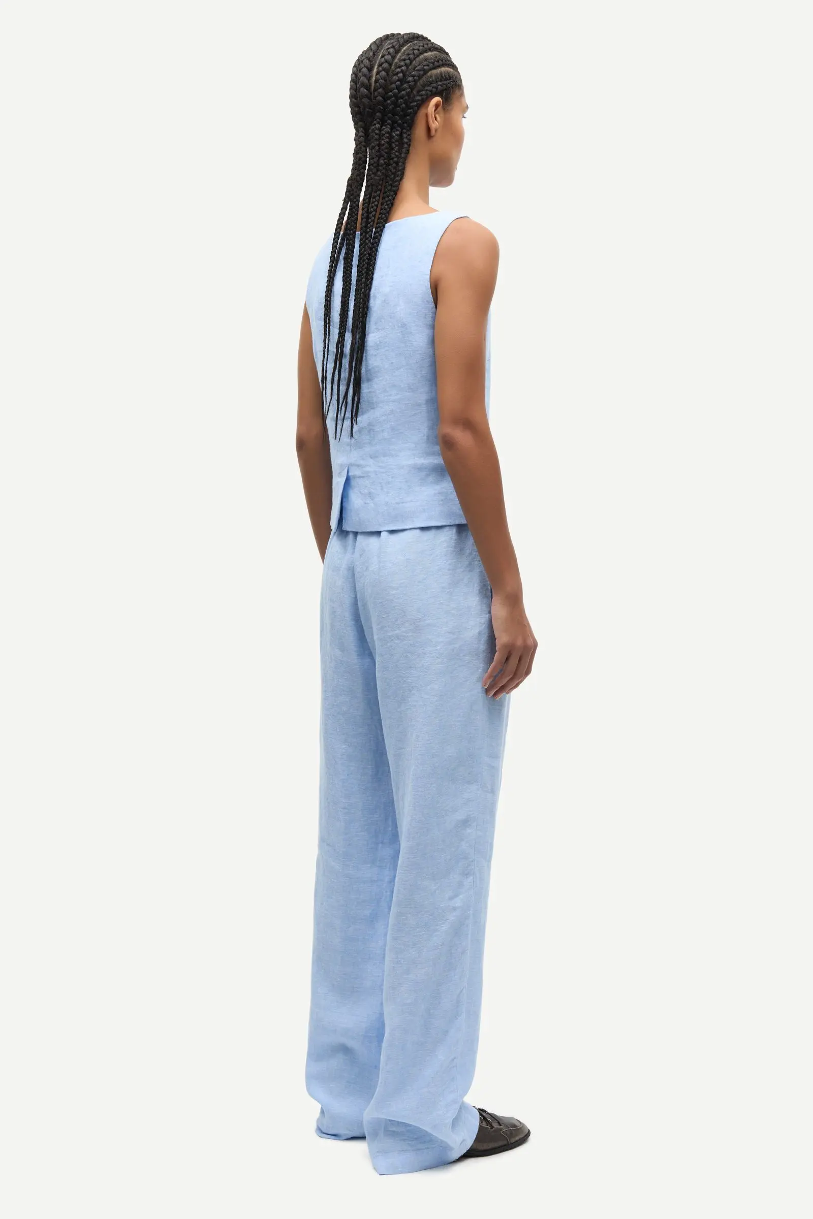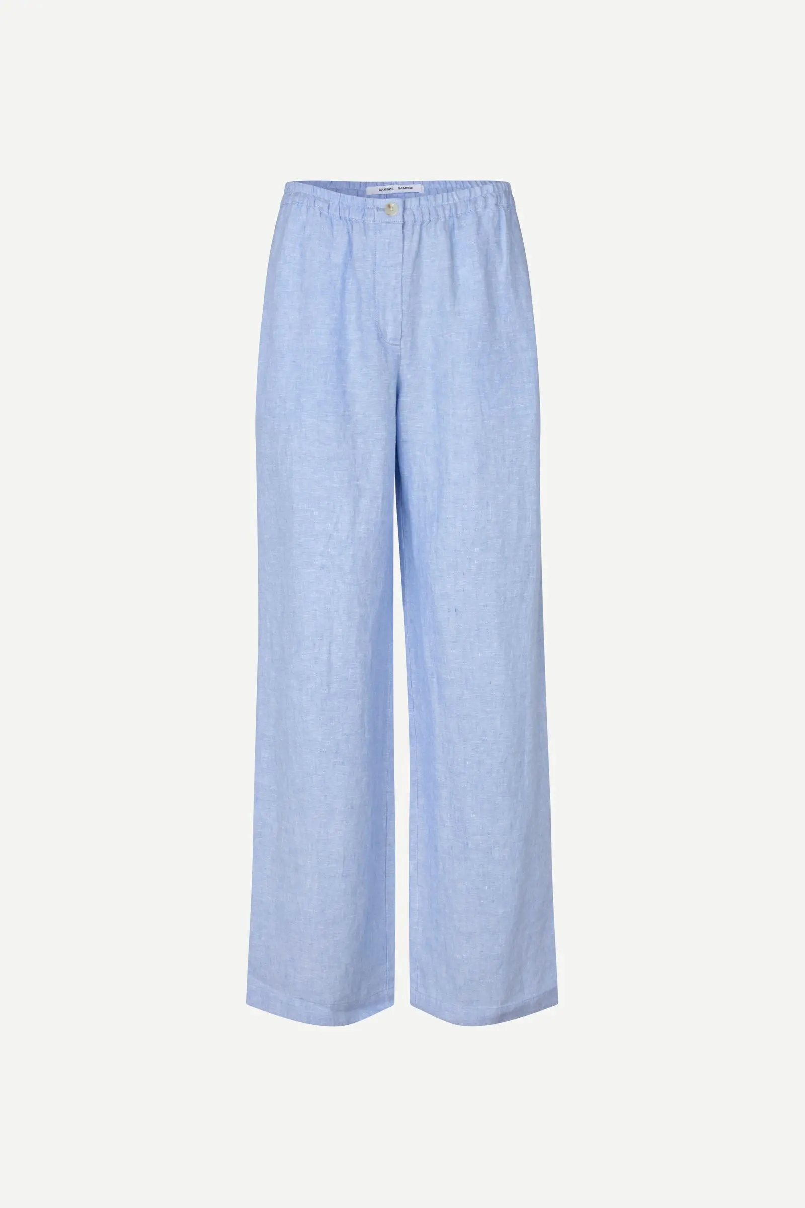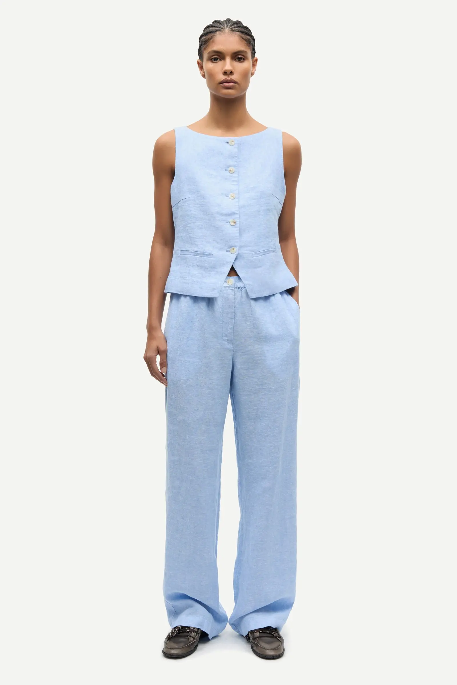 Kauniit ja klassiset pellavasta valmistetut housut. Housuissa suora lahje, taskut sivuilla sekä mukava joustava kuminauhallinen vyötärö. Yhdistä lämpimän neuleen tai raikkaan t-paidan kanssa tai settinä Saloves Vestin kanssa. Suosittelemme valitsemaan oman koon tai koon pienemmän