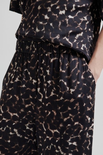 Tyylikkäästi laskeutuvat viskoosi sekoitteesta valmistetut housut kauniilla printillä. Housuissa joustava kuminauha vyötärö, suorat lahkeet ja taskut sivuilla. Normaalia kokoa ja mallia, joten suosittelemme valitsemaan oman koon. Yhdistä housut Savani Puseron kanssa tai lempi neuleesi kanssa.