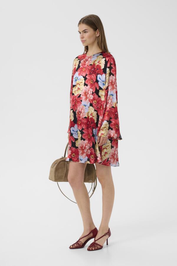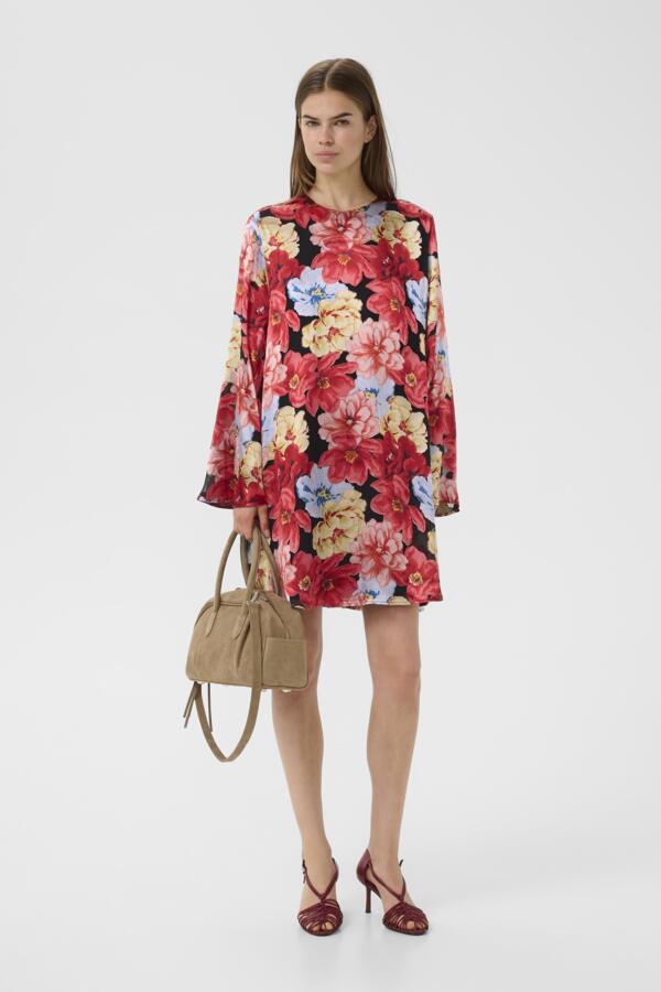 Rento ja kaunis suoralinjainen mekko pitkillä hihoilla sekä pyöreällä pääntiellä. Viskoosi-silkki sekoitteesta valmistettu mekko sopii niin arkeen että juhlaan sen mukavuuden ja vaivattoman tyylin ansiosta. Rento malli, joten suosittelemme valitsemaan oman koon ja koon pienemmän väliltä.