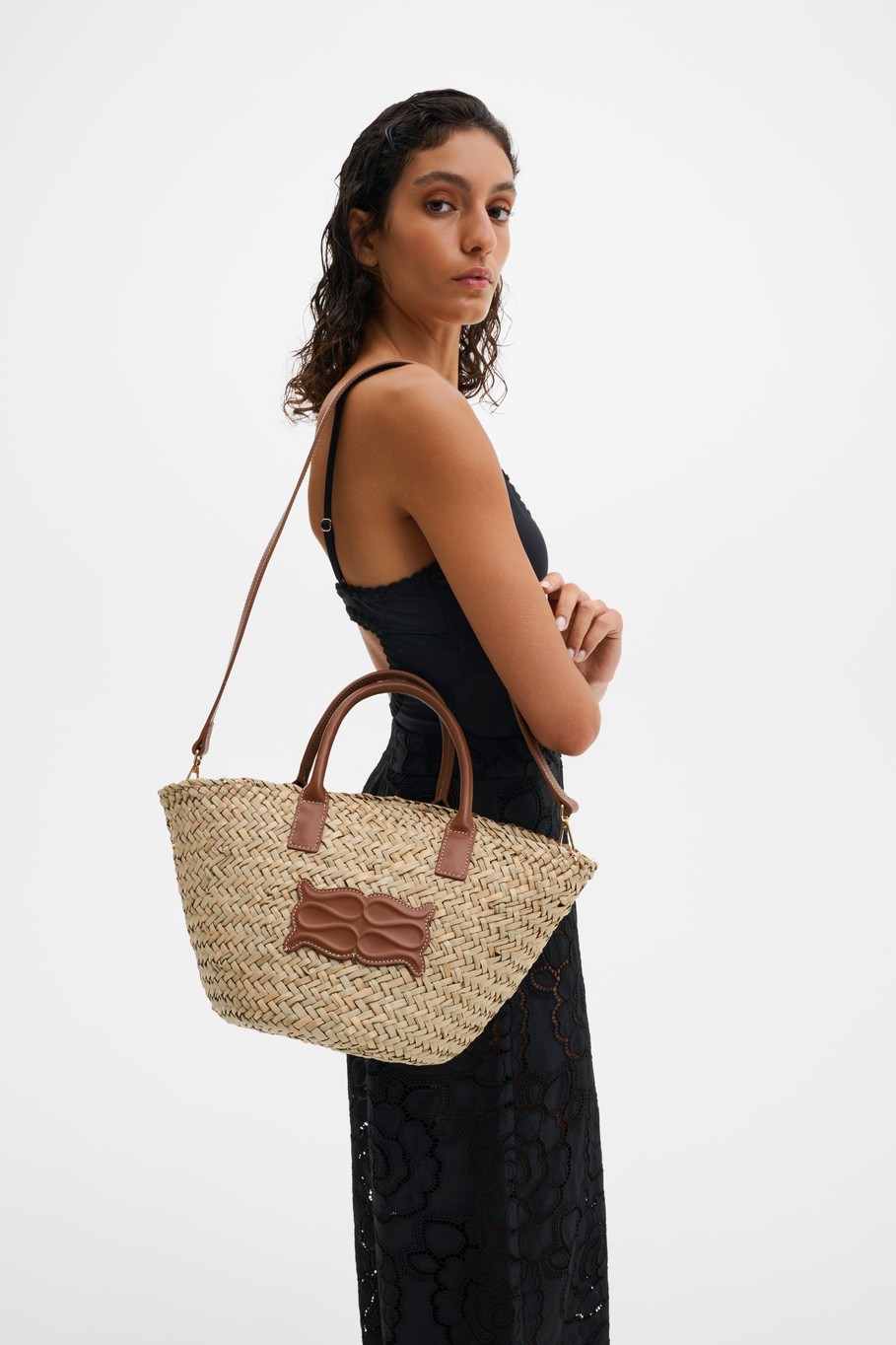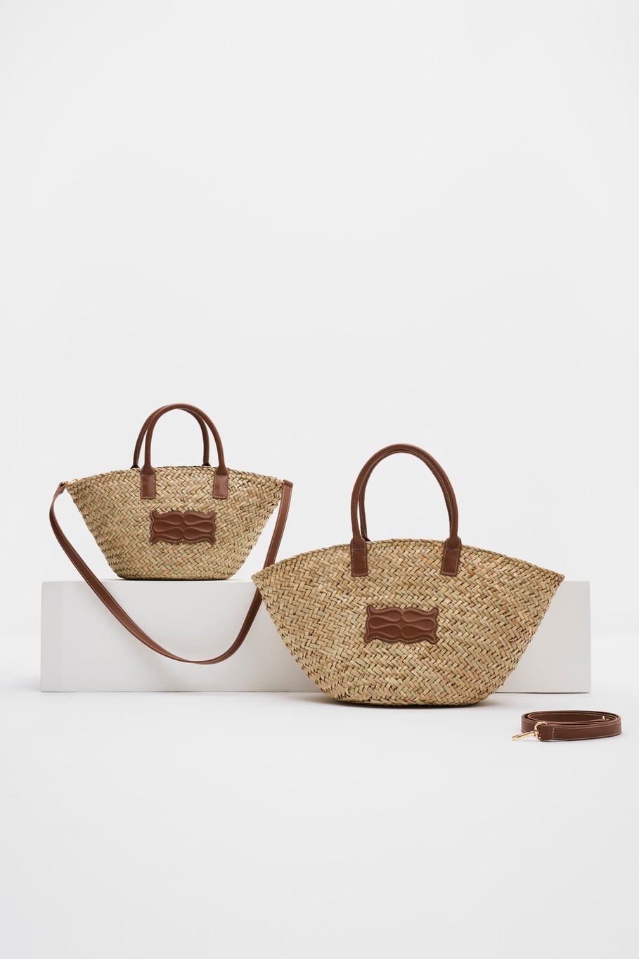 Tyylikäs ja klassinen olkilaukku, jossa nahka yksityiskohdaat ja Malinan Monogram -logo.