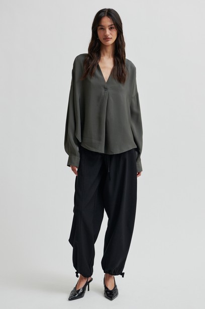 Kaunis ja rento pusero on valmistettu pehmeästä modaali sekotteesta. Puserossa syvä imarteleva kaula-aukko ja rento A-linjainen leikkaus. Klassisessa puserossa on rento malli ja koko, joten suosittelemme valitsemaan oman koon ja koon pienemmän väliltä