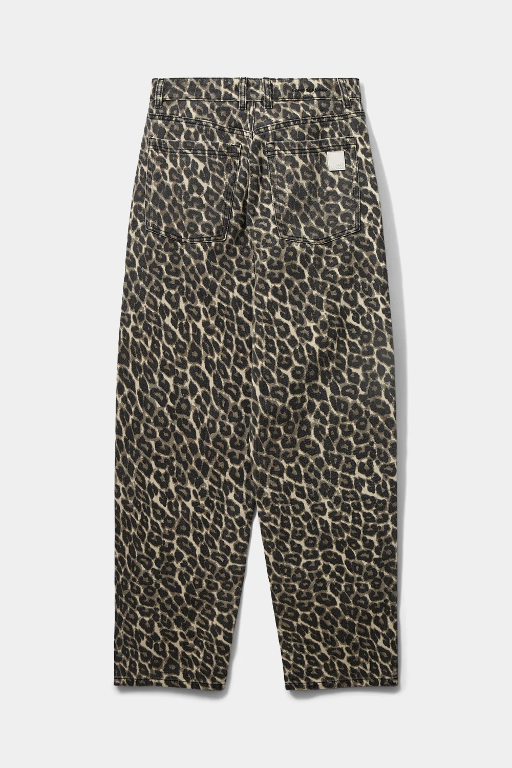 Super mukavat ja rennot farkut klassisessa leopardi kuosissa. Rennoissa farkuissa keskikorkea vyötärö ja suora, pitkä ja pieni barrel -mallinen lahje. Farkuissa rento malli, joten suosittelemme valitsemaan oman koon.