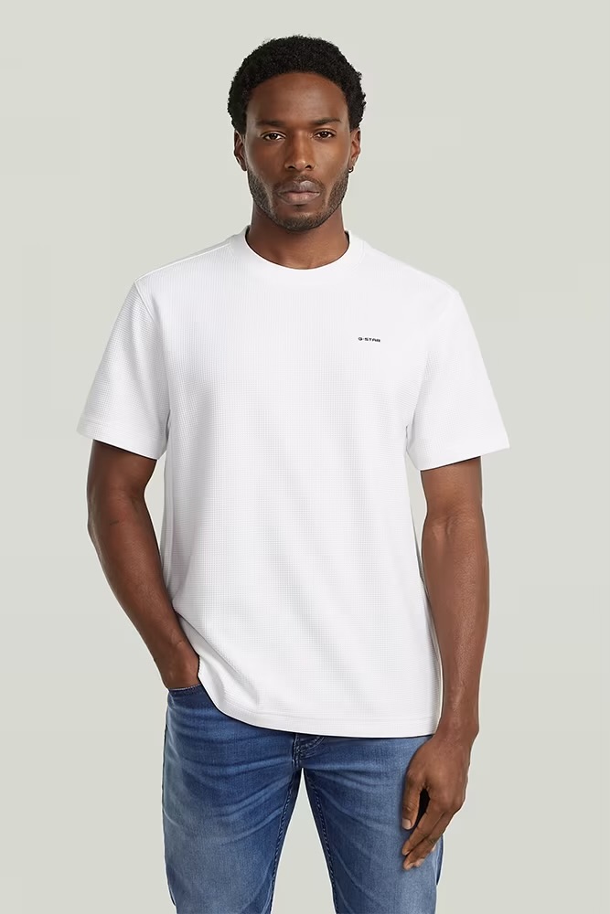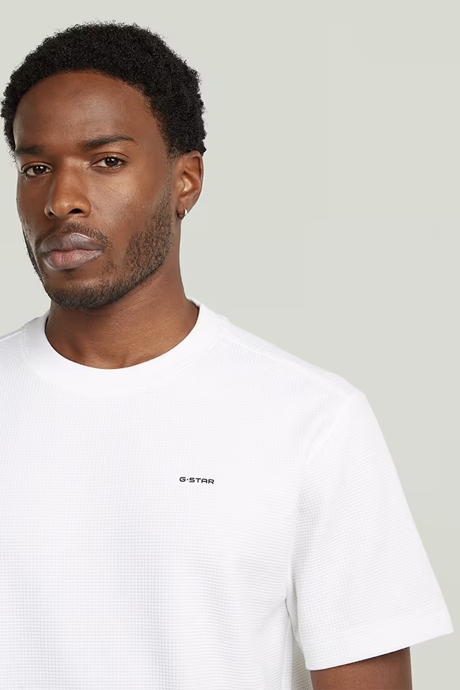 Klassinen ja rento vohvelikankainen t-paita, jossa yksityiskohtana rinnuksella G-STAR -teksti. Rento malli ja koko, joten suosittelemme valitsemaan oman koon tai koon pienemmän.