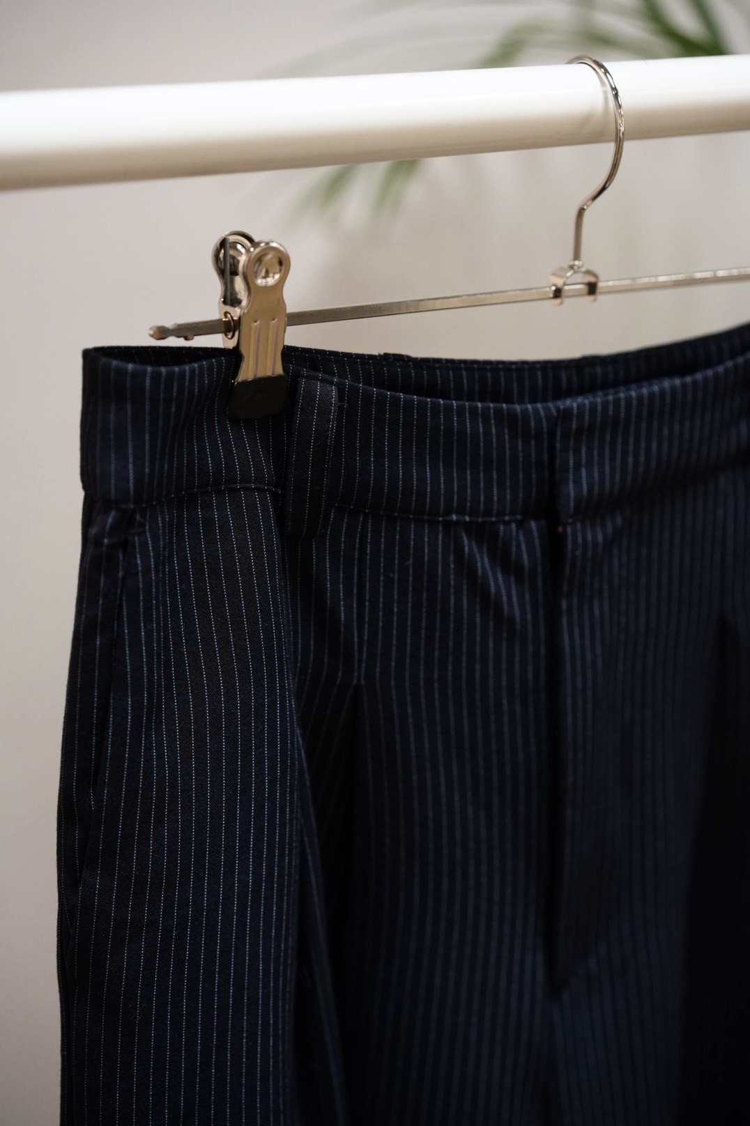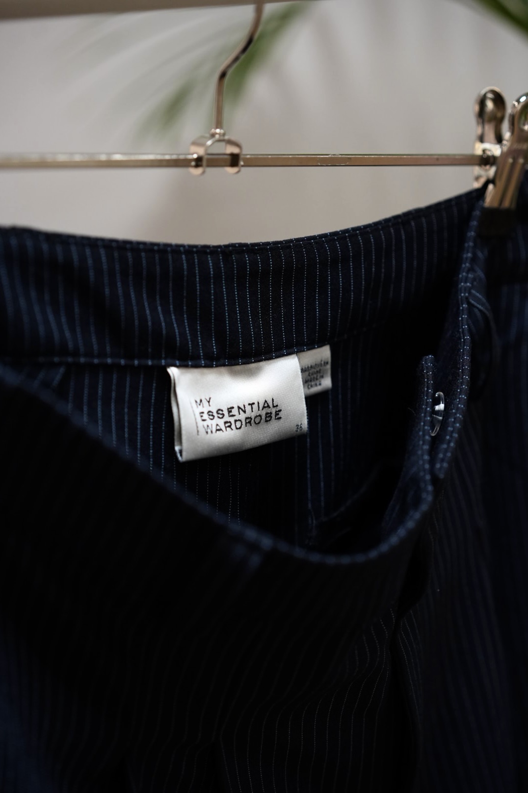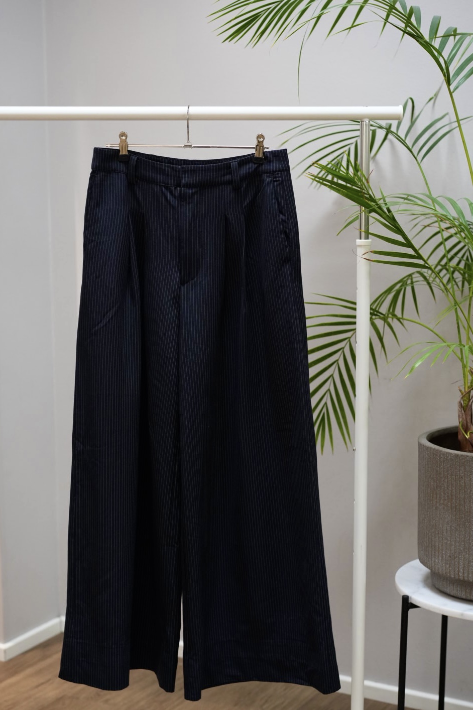 Kauniit ja hyvin laskeutuvat korkeavyötäröiset. Sininen liituraita.