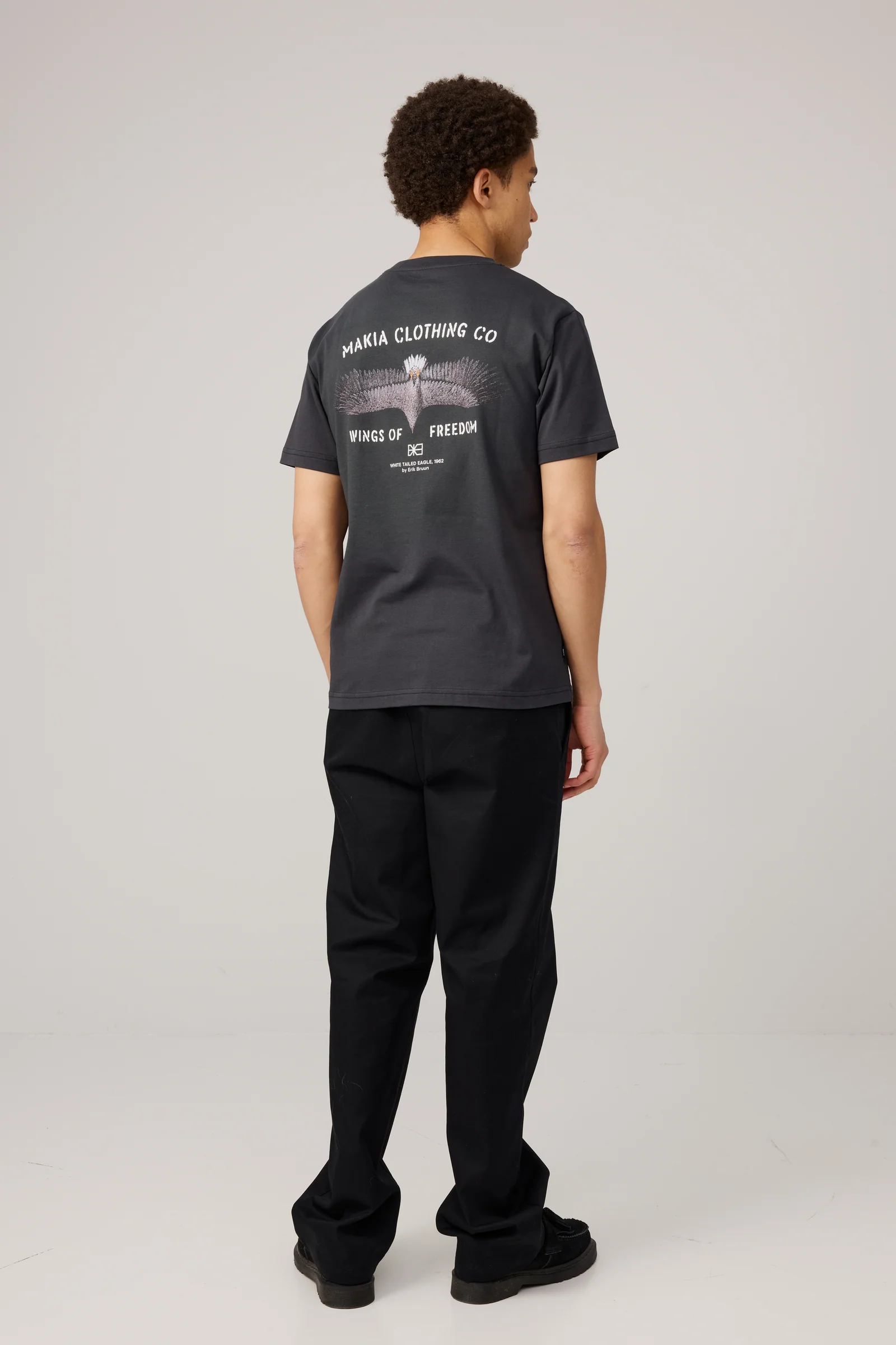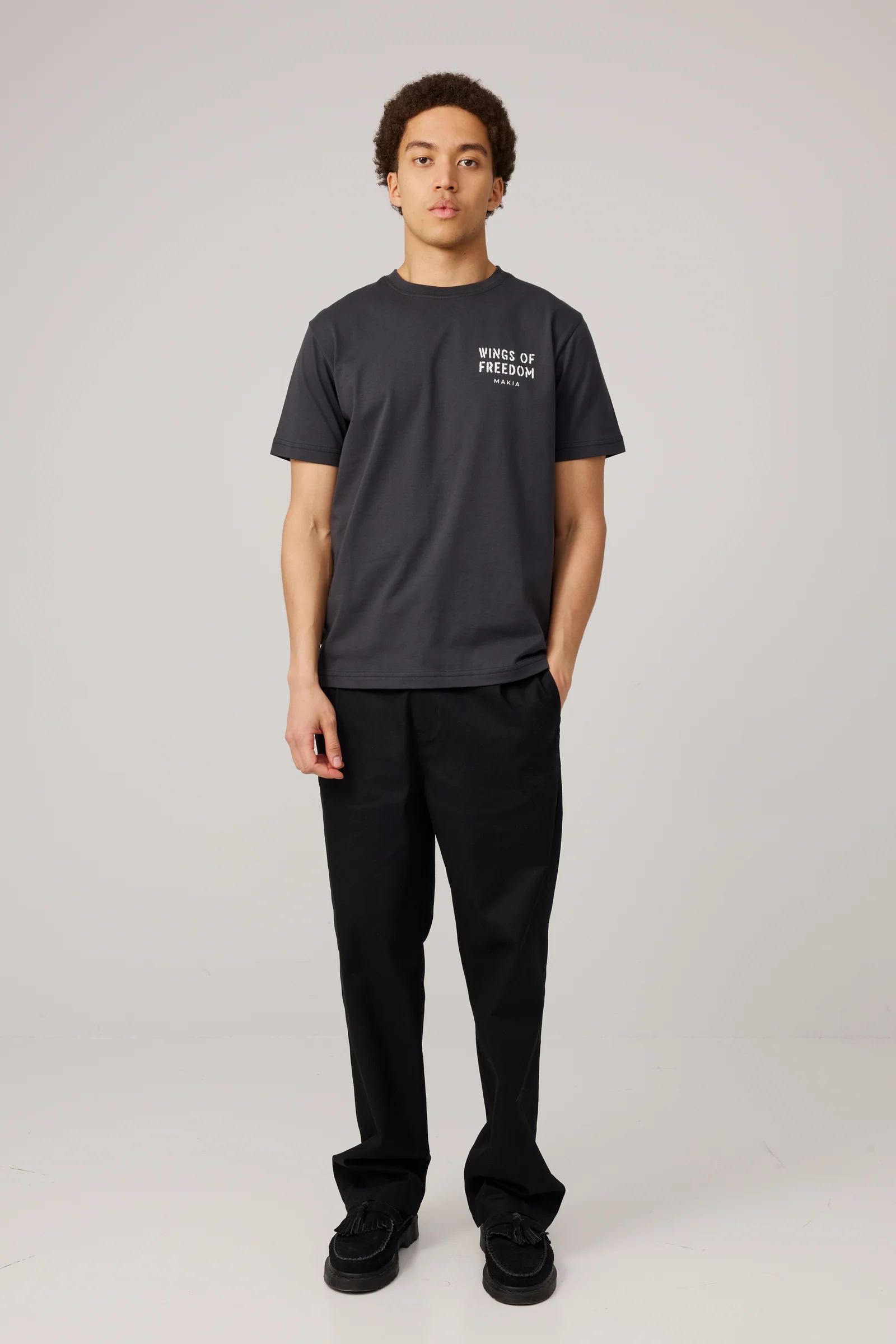 Tyylikäs luomu puuvillasta valmistettu t-paita, jossa yksityiskohtana selässä iso graafinen kuva sekä rinnuksella Makia -teksti. T-paidassa normaali malli ja koko, joten suosittelemme valitsemaan oman koon tai koon pienemmän.